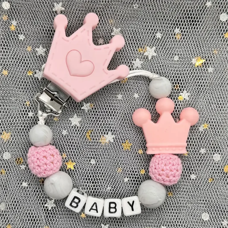 Hot Sale Custom Name Wooden Personalized Baby Pacifier Chains Beech Bead Dummy Nipple Holder Teether Pendant Newborn Mother Gift