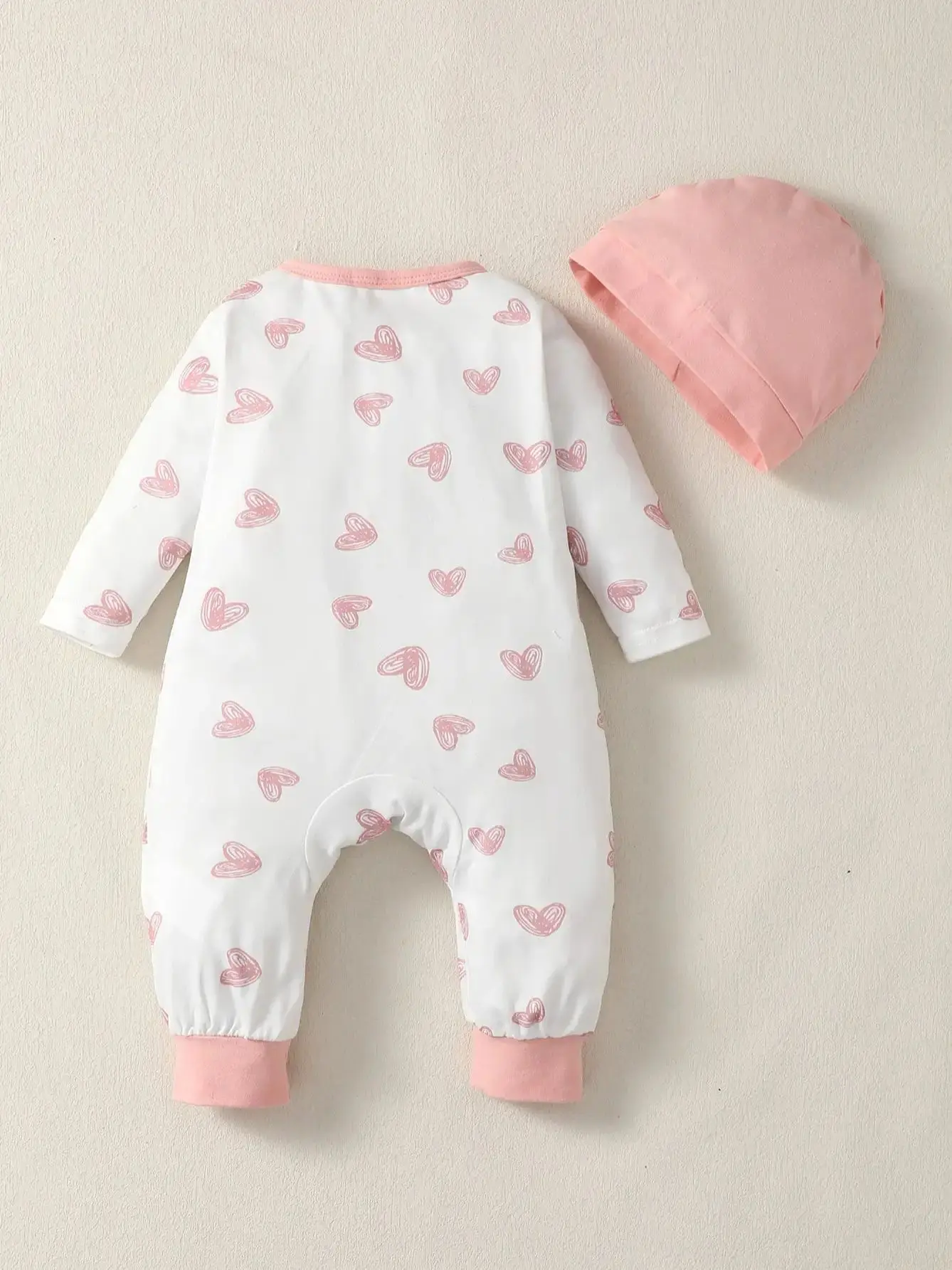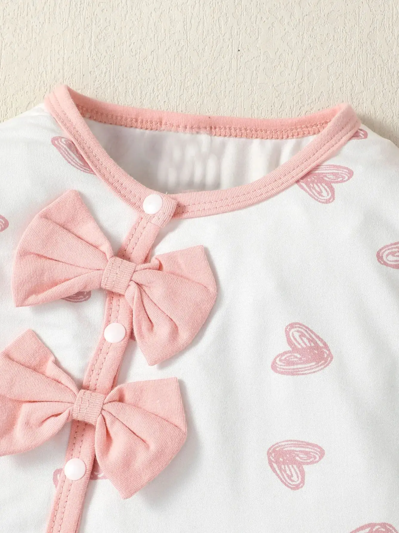 0-2 Year Old Newborn Baby Gilr Spring and Autumn Round Neck Bow Long Sleeve Love Printed Pants jumpsuit