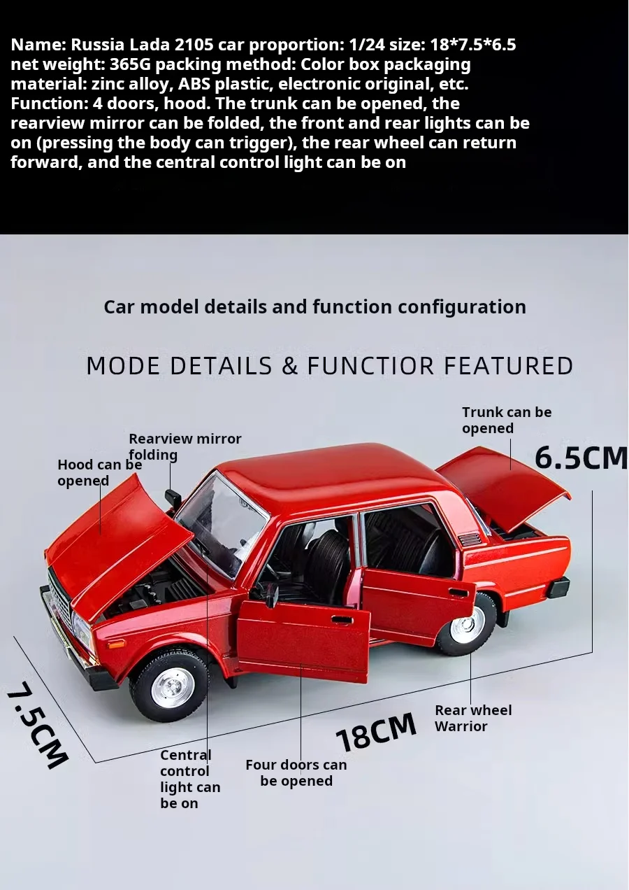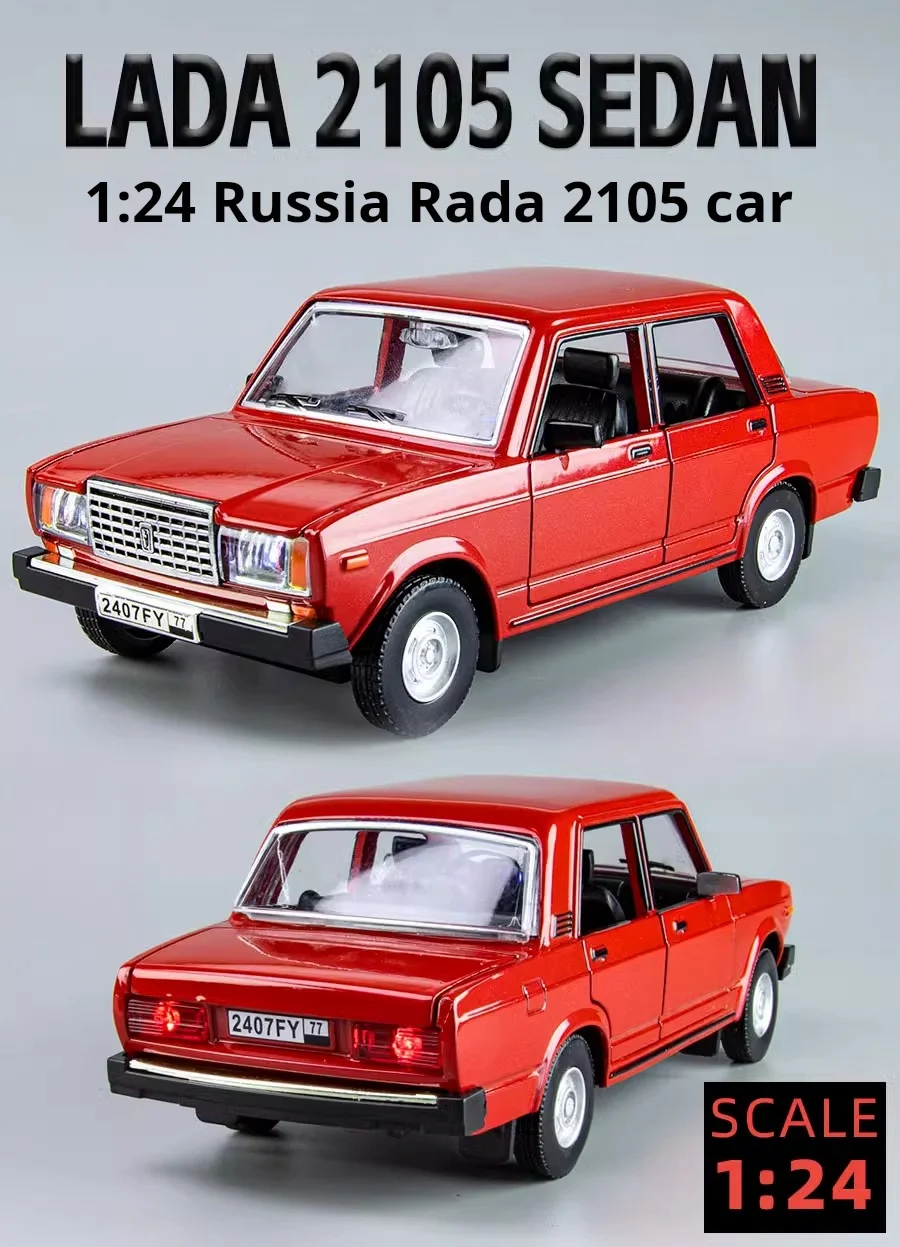1/24 Scale Russia LADA SEDAN Alloy Diecast Classic Car Model Retro Sound Light Pull Back Kid Gift Collect Ornament Recommended