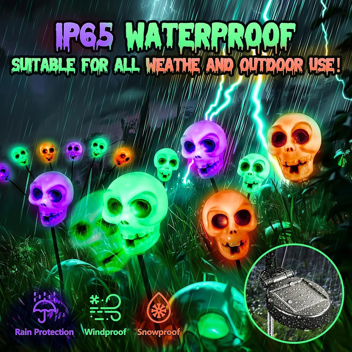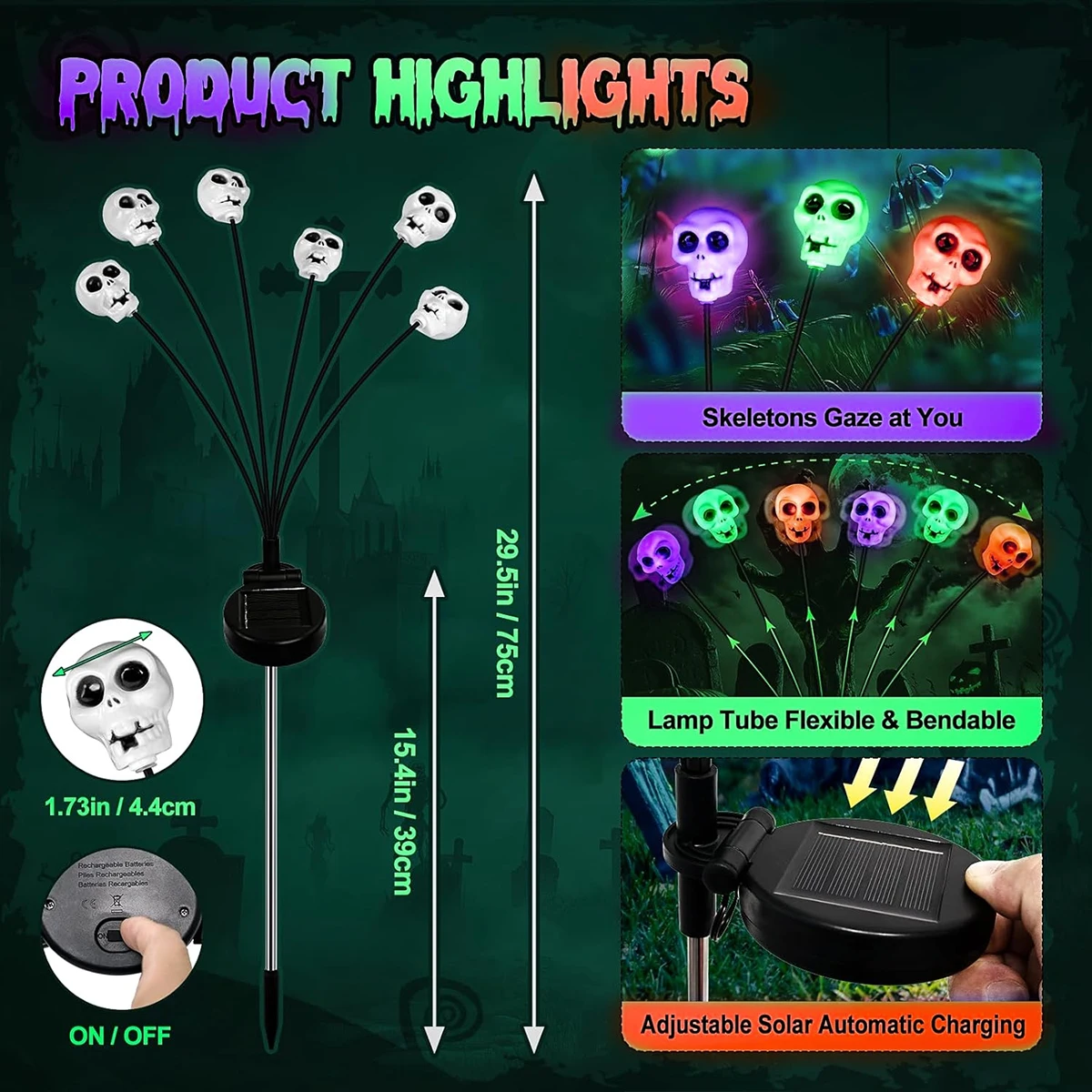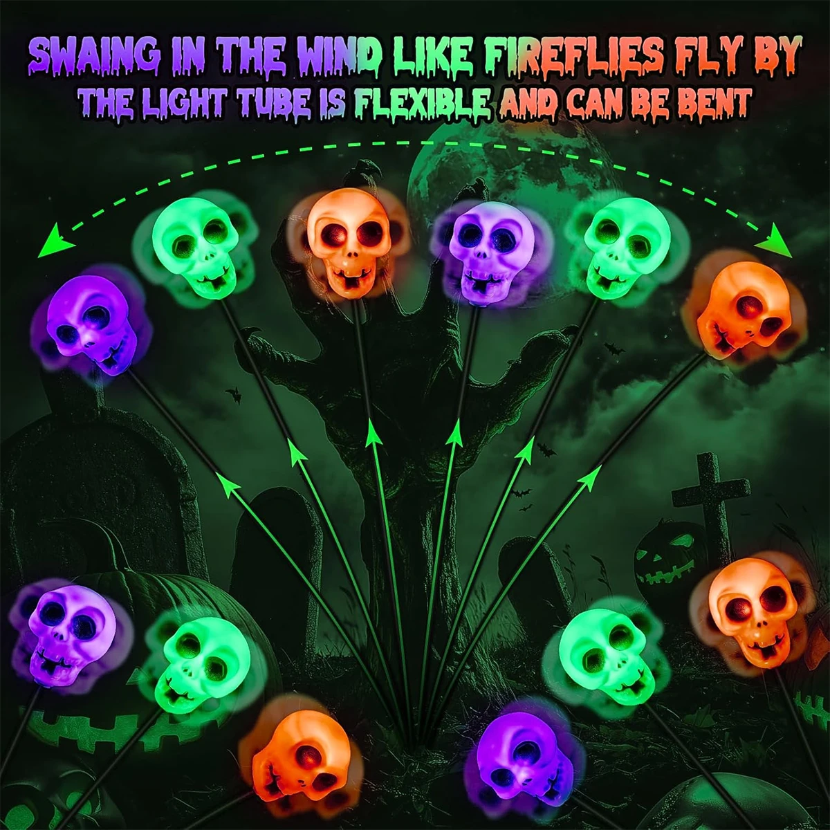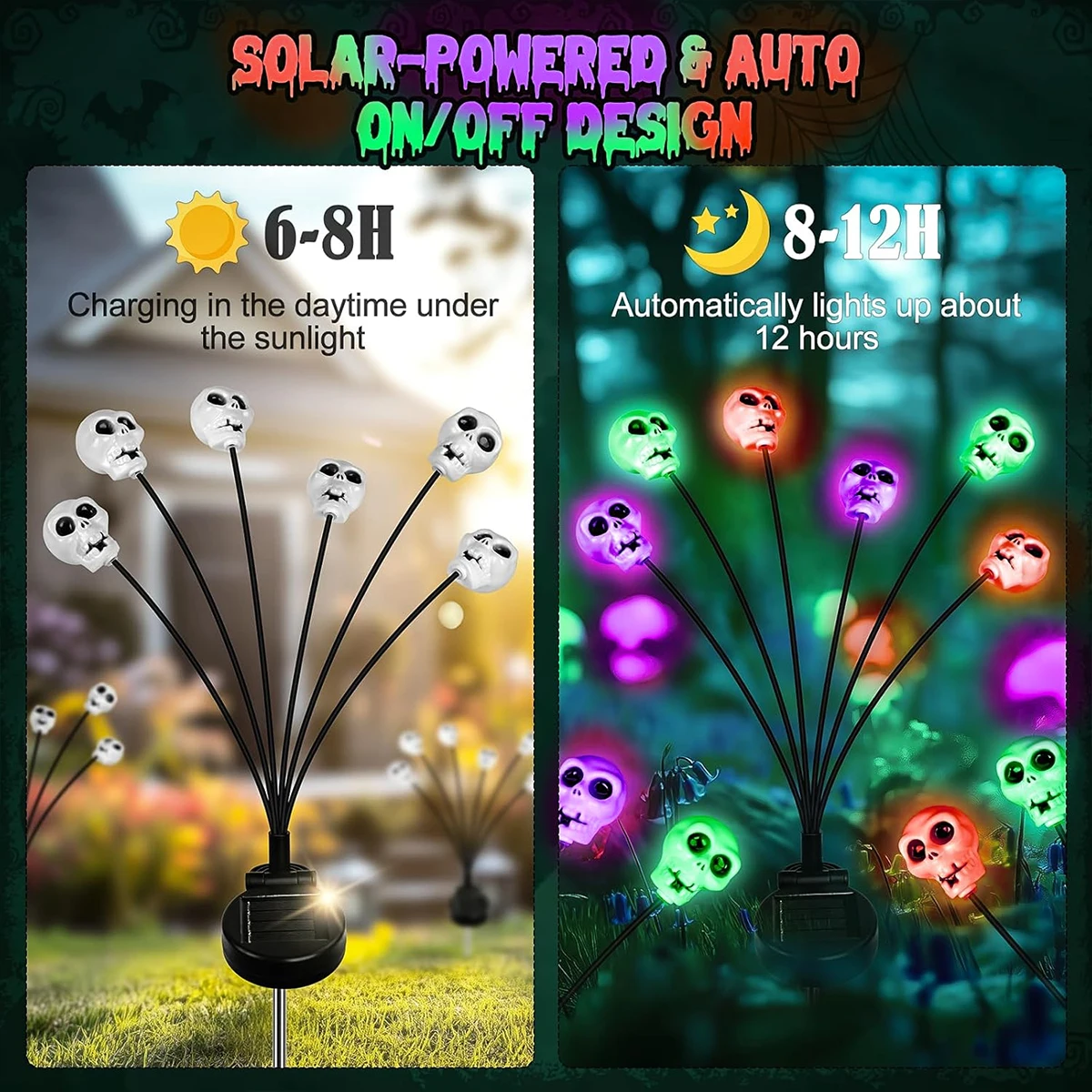 1/2pc Halloween Solar Firefly Light 6/12LED Swaying Skull Landscape Light Solar Powered For Home Outdoor Garden Yard Decoration