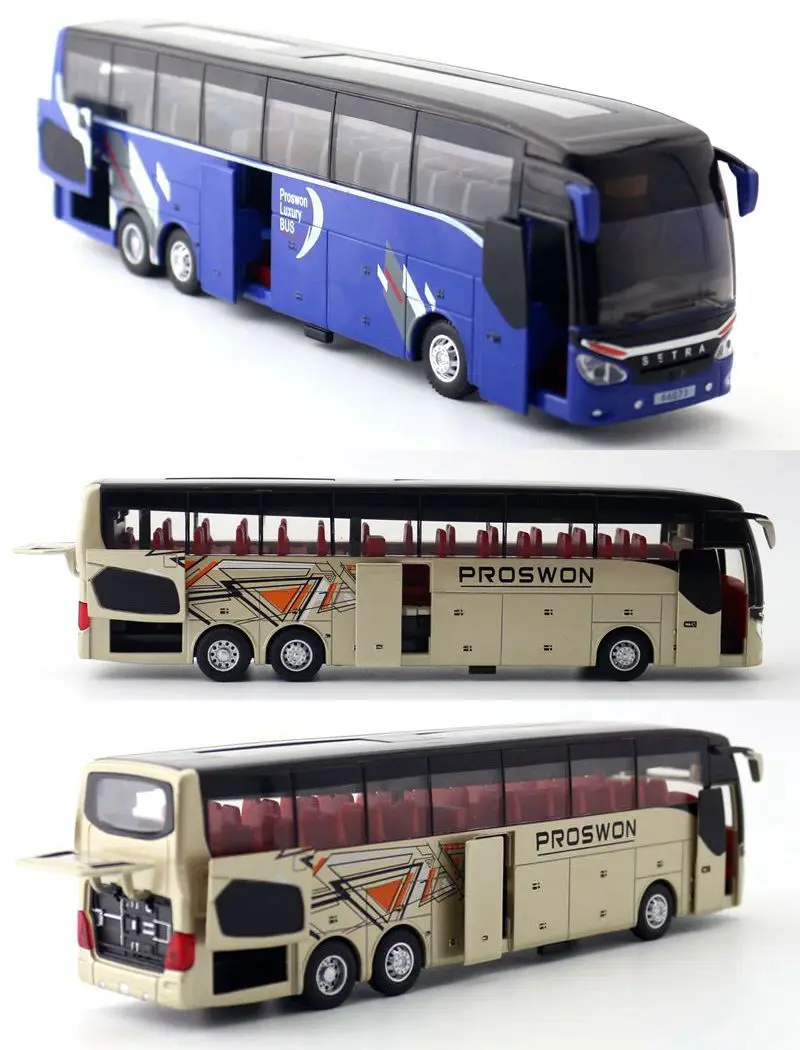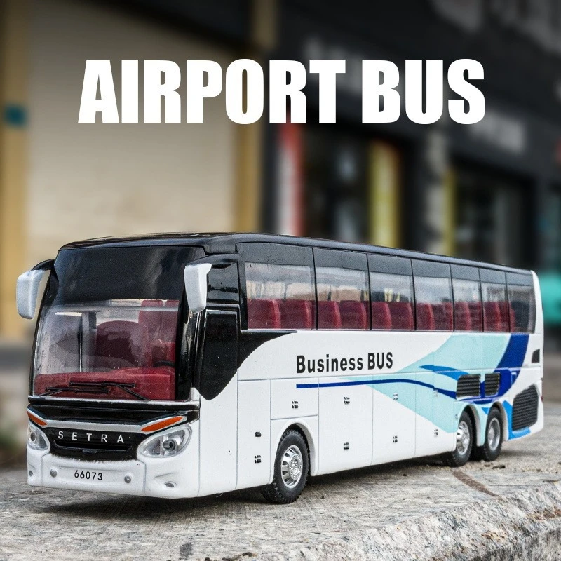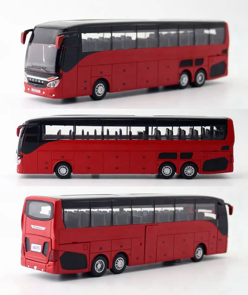 1/32 Scale Diecast Alloy SETRA Luxury Bus Model Children’s Toy Car Business Travel Bus Pull Back Sound and Light Miniature