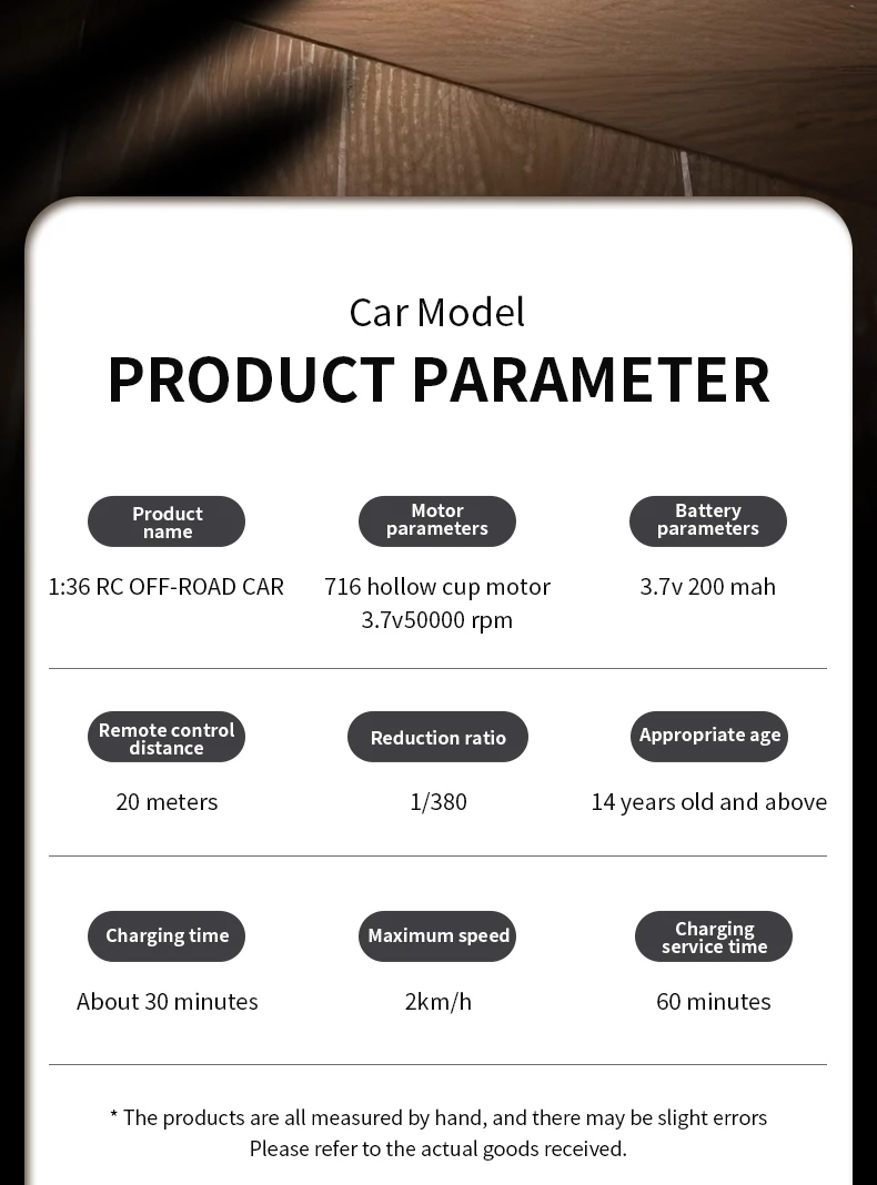 5. The battery in the car is 3.7V lithiumn battery, please do not puncture the battery and remove it violently to prevent the risk of fire.