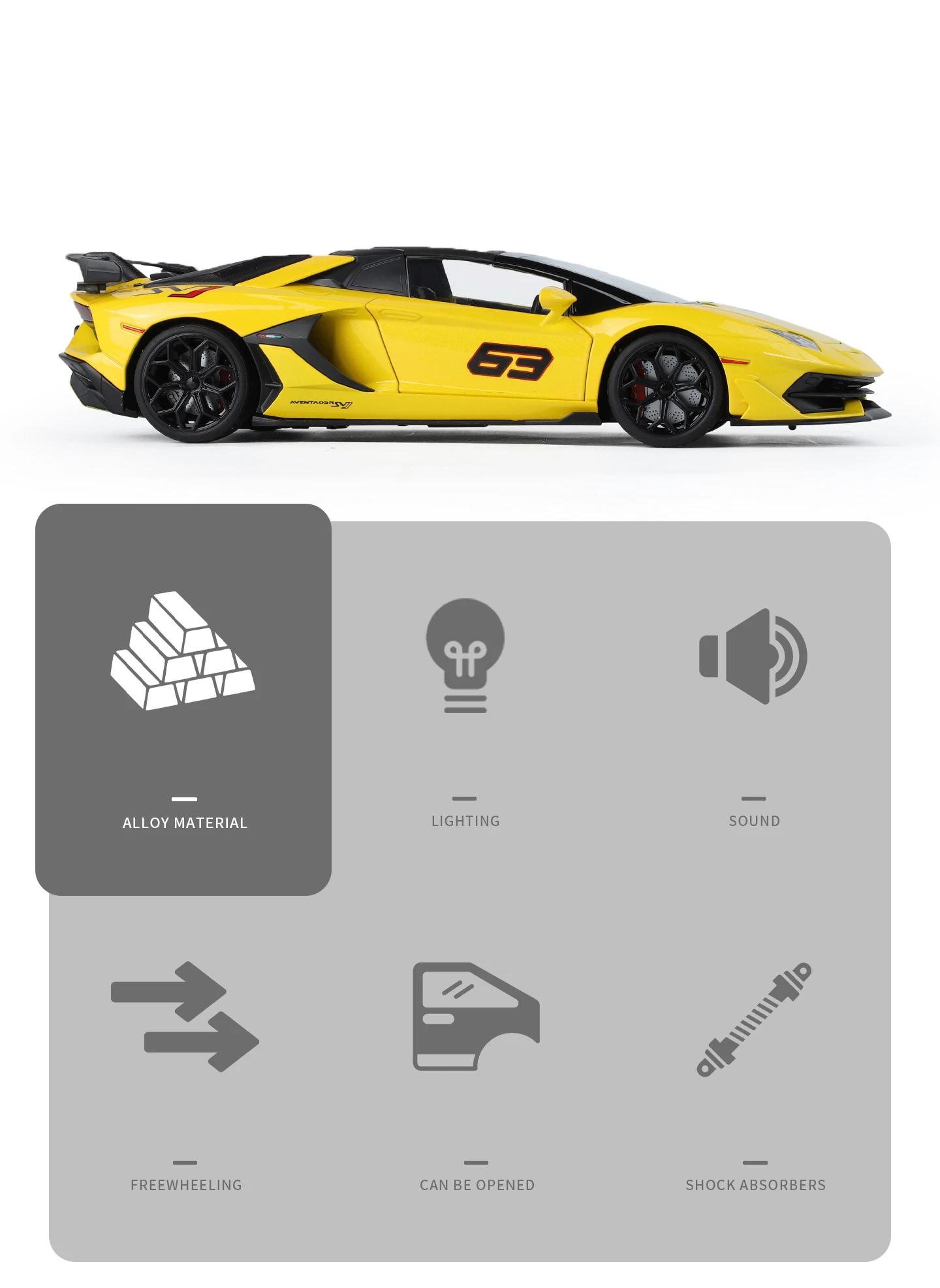 1:18 Aventador SVJ63 Removable Convertible Version Supercar Alloy Metal Diecast Model Car Simulation Decoration Ornaments Gifts