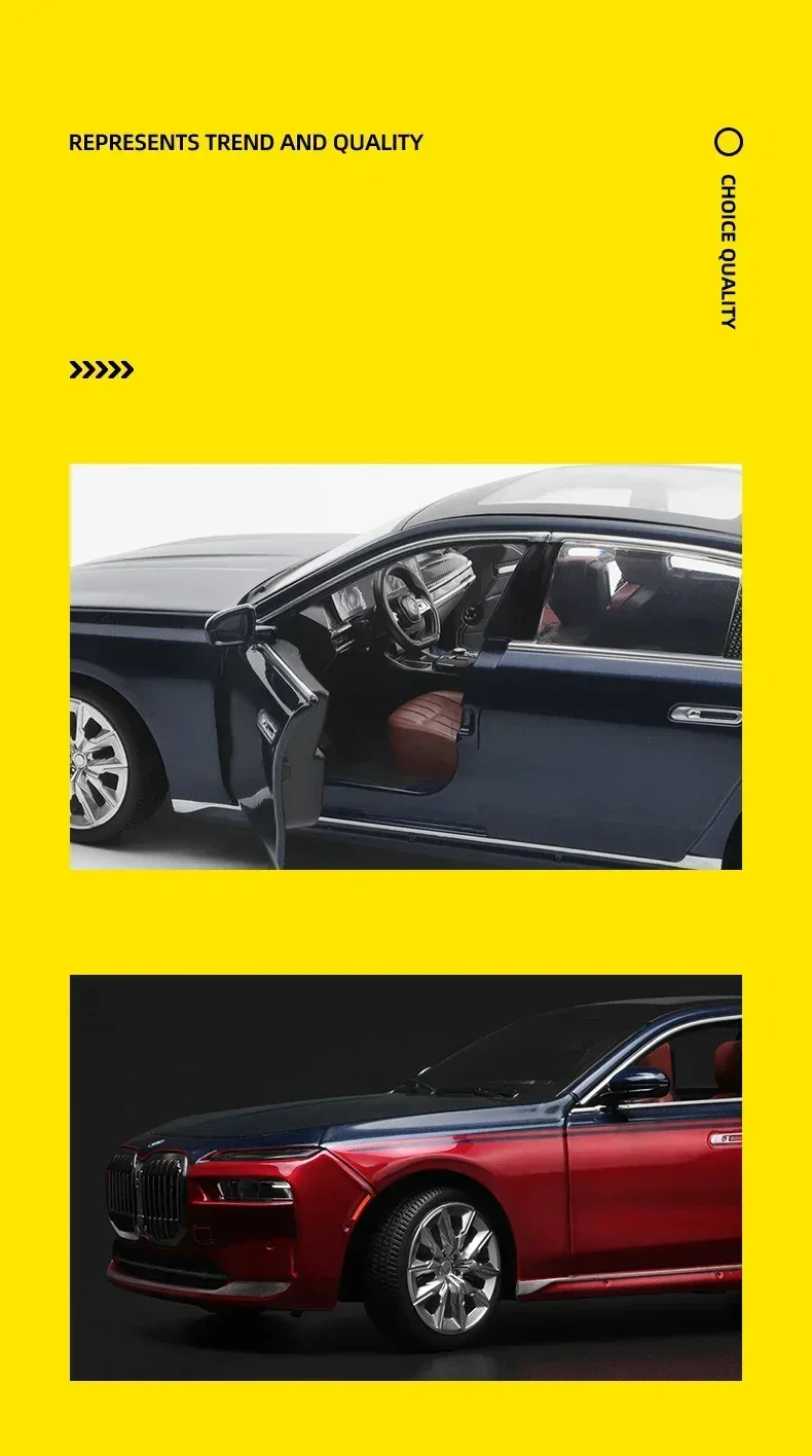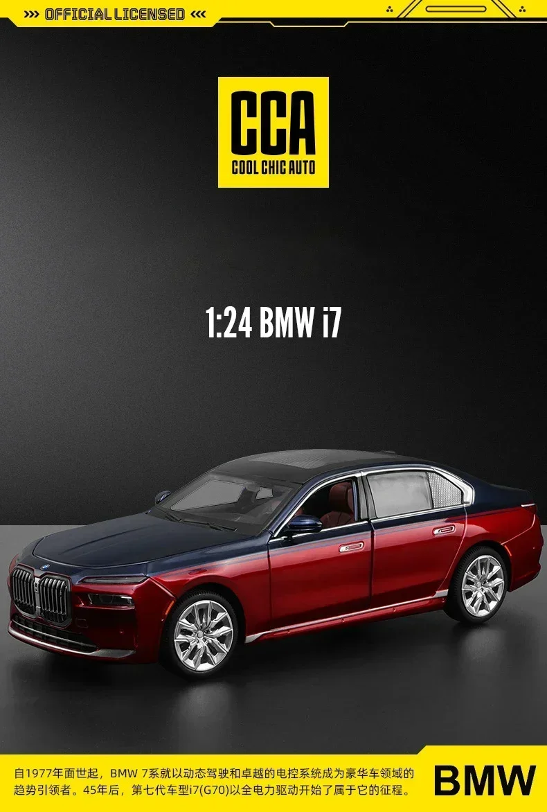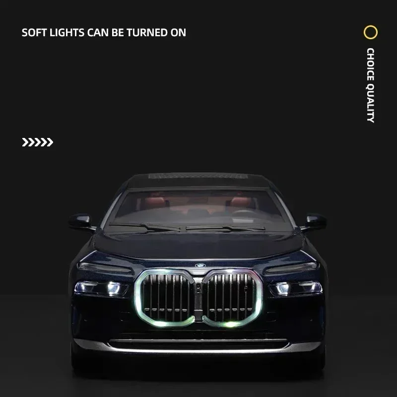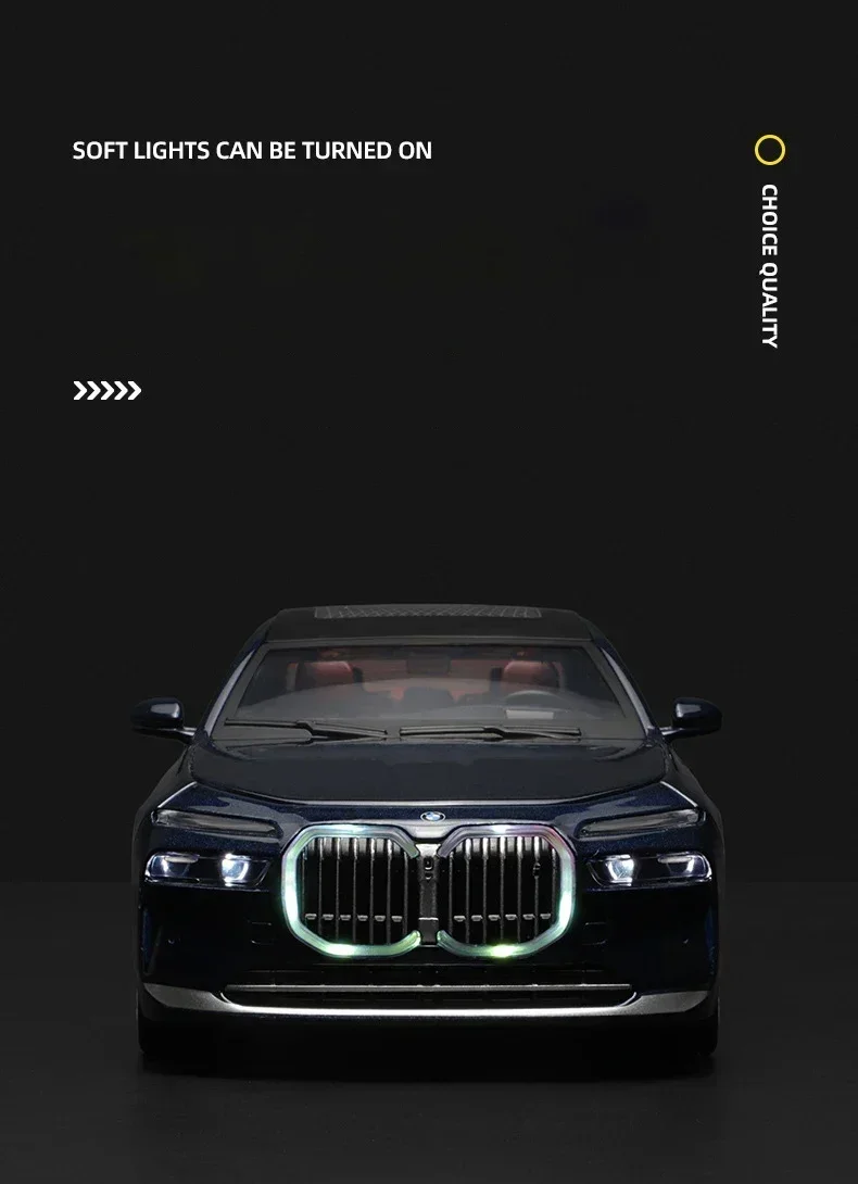 1:24 BMW I7 M70L Luxury Electric Sedan Alloy Miniature Car Diecast Metal Scale Car Model Sound&light Children Toy Car Vehicles