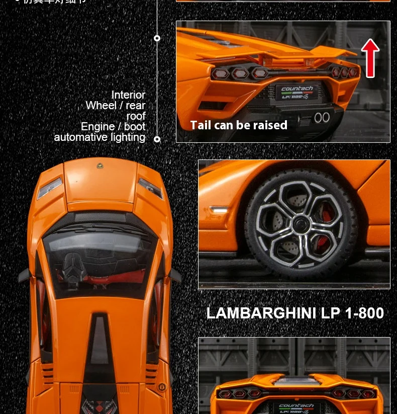 1:24 Lamborghini Countach LPI 800-4 Alloy Sports Car Diecast Model Sound Light Toy Exhibition Display Decoration Collestion Gift