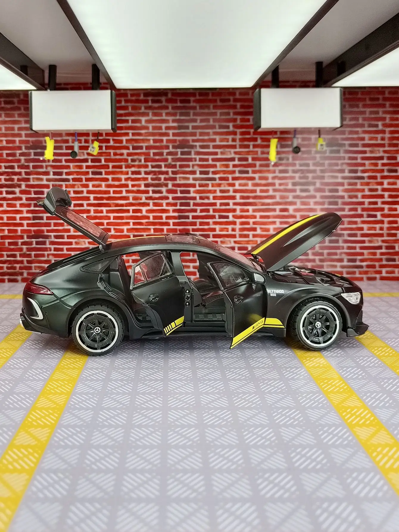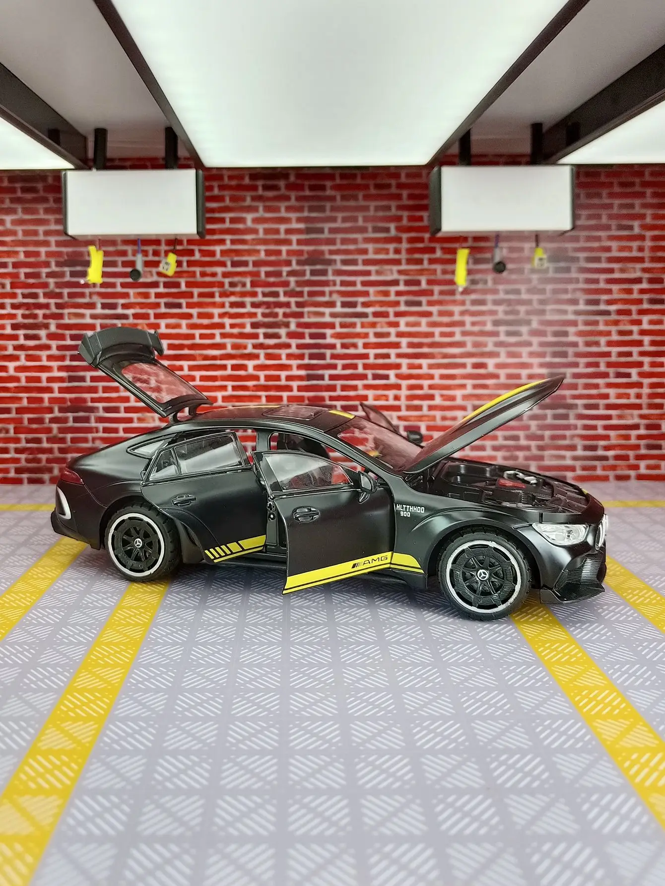 1:24 Mercedes-Benz GT63 alloy car model ornaments collection acousto-optic pull-back toy doors and hood trunk can be opened.
