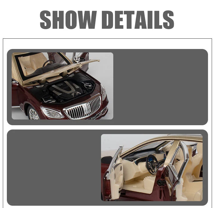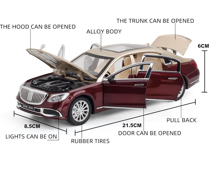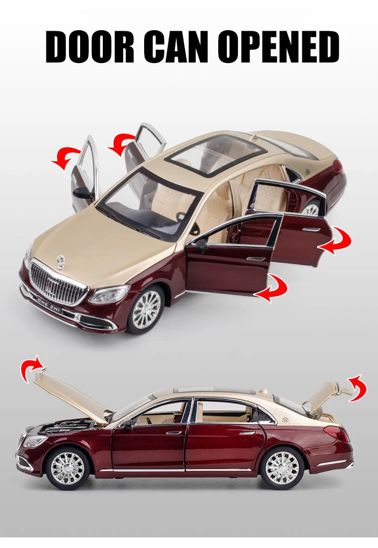 1:24 Scale S680 Car Model Toy Doors Opened Sound Light Pull Back Diecast Metal Shock Absorption Models Boys Collection Gifts