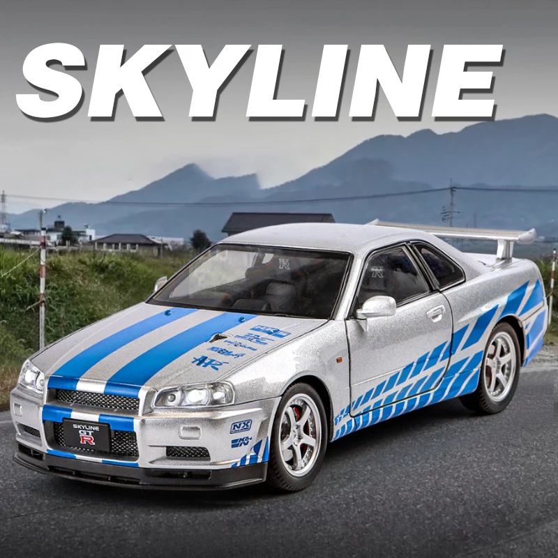 1:24 Nissan GTR R34 Skylin Alloy Car Model Sound and Light Pull Back Children’s Toy Collectibles Birthday gift