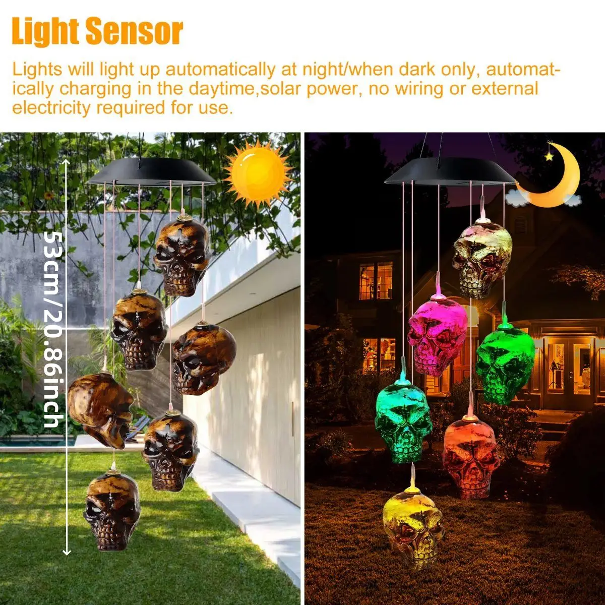 - Skeleton Skull Wind Chime Light: Skulls Solar Powered LED Night Lights