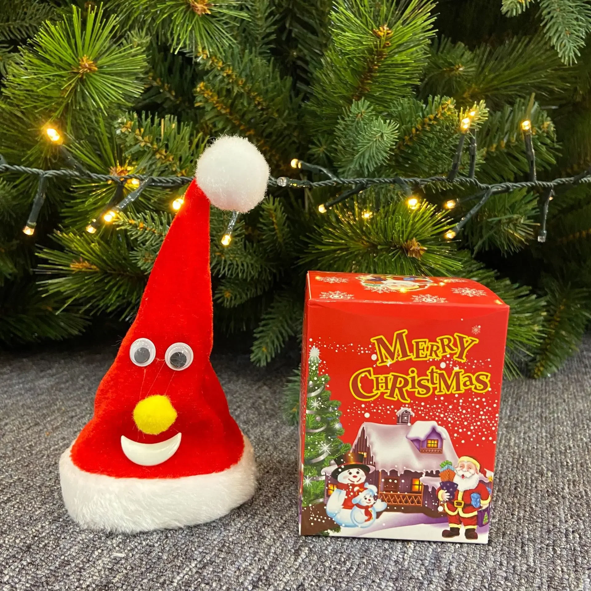 1pc Swing Singing Christmas Tree Hat Happy New Year Electric Glowing Music Plush Cap Funny Toy Gift For Kid Xmas Home Decoration