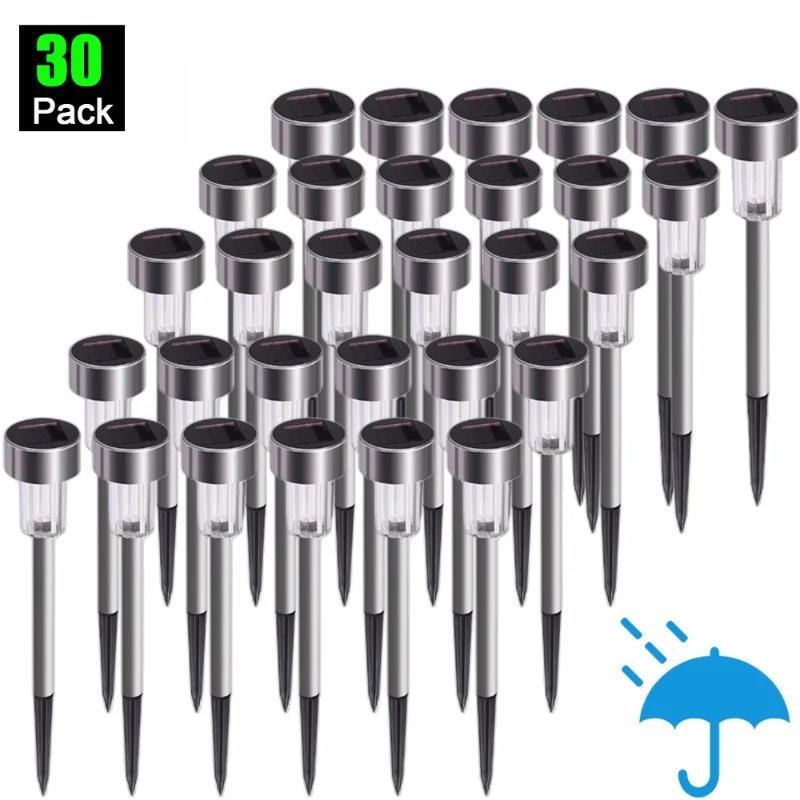 30Pack Solar Garden LED Light Landscape Garden Yard Path Lawn Stainless Steel Solar Lamps Outdoor Grounding Sun Light