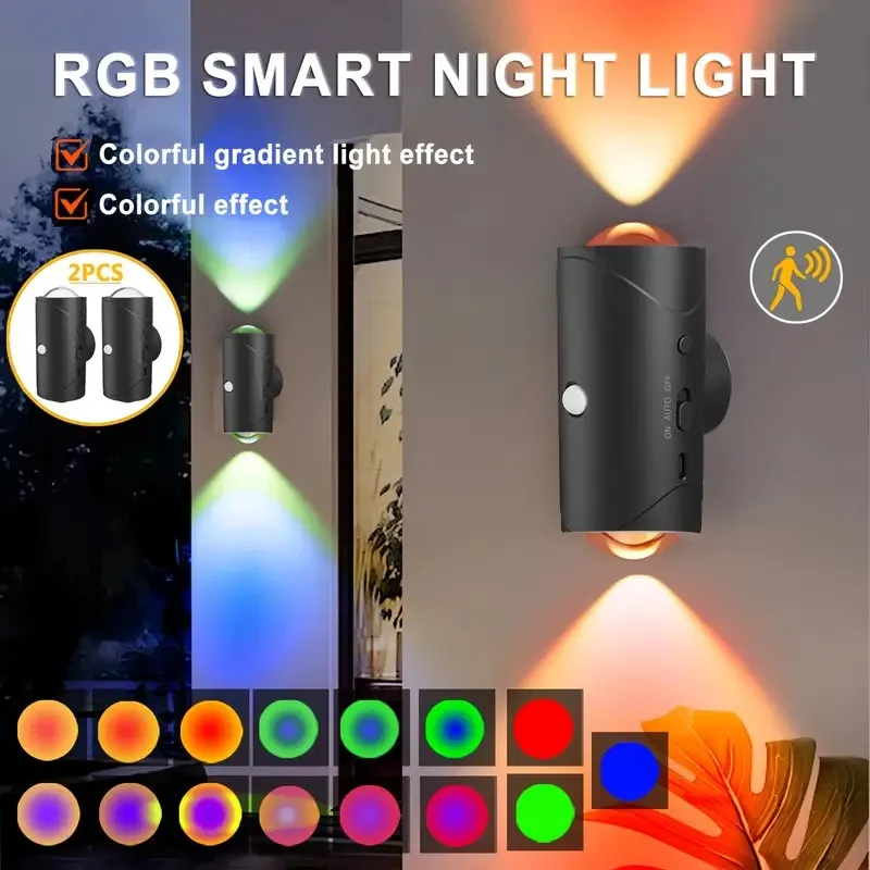 4/2/1 PCS Motion Sensor Smart Light, Dimmable LED Night Lamp, RGB Gradient Ambient Light, Rechargeable Wall Sconce Light Sensor