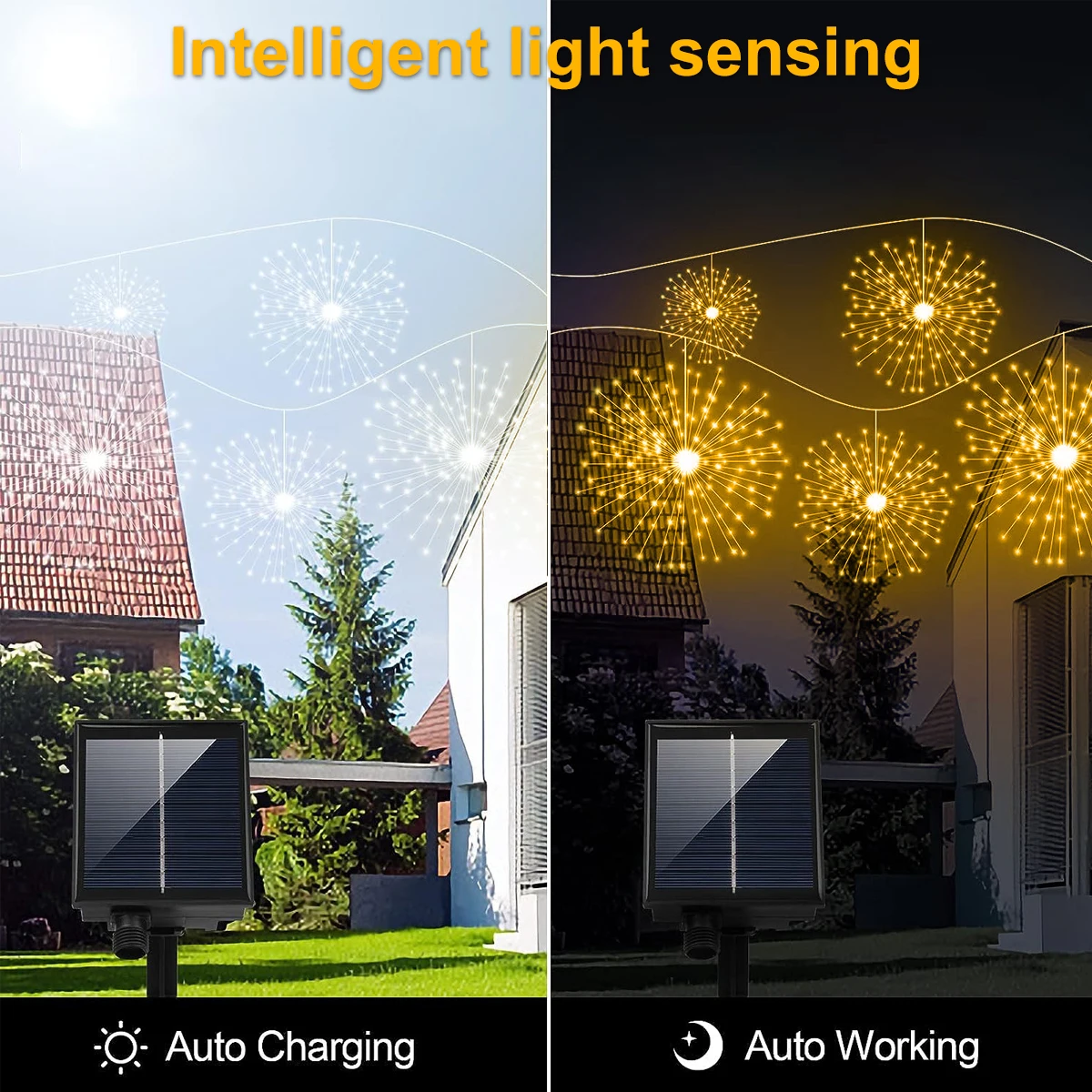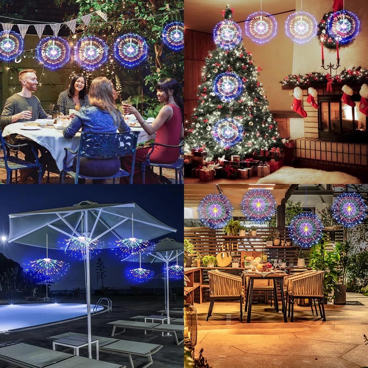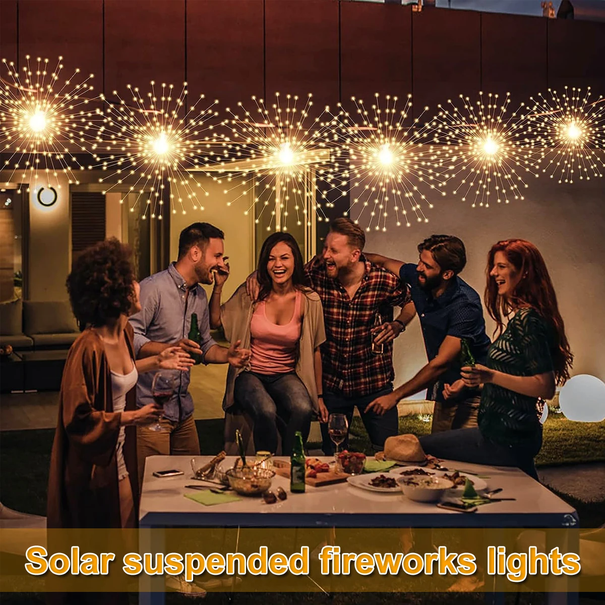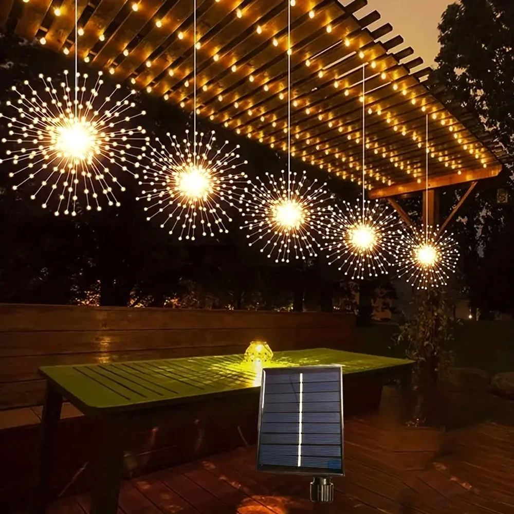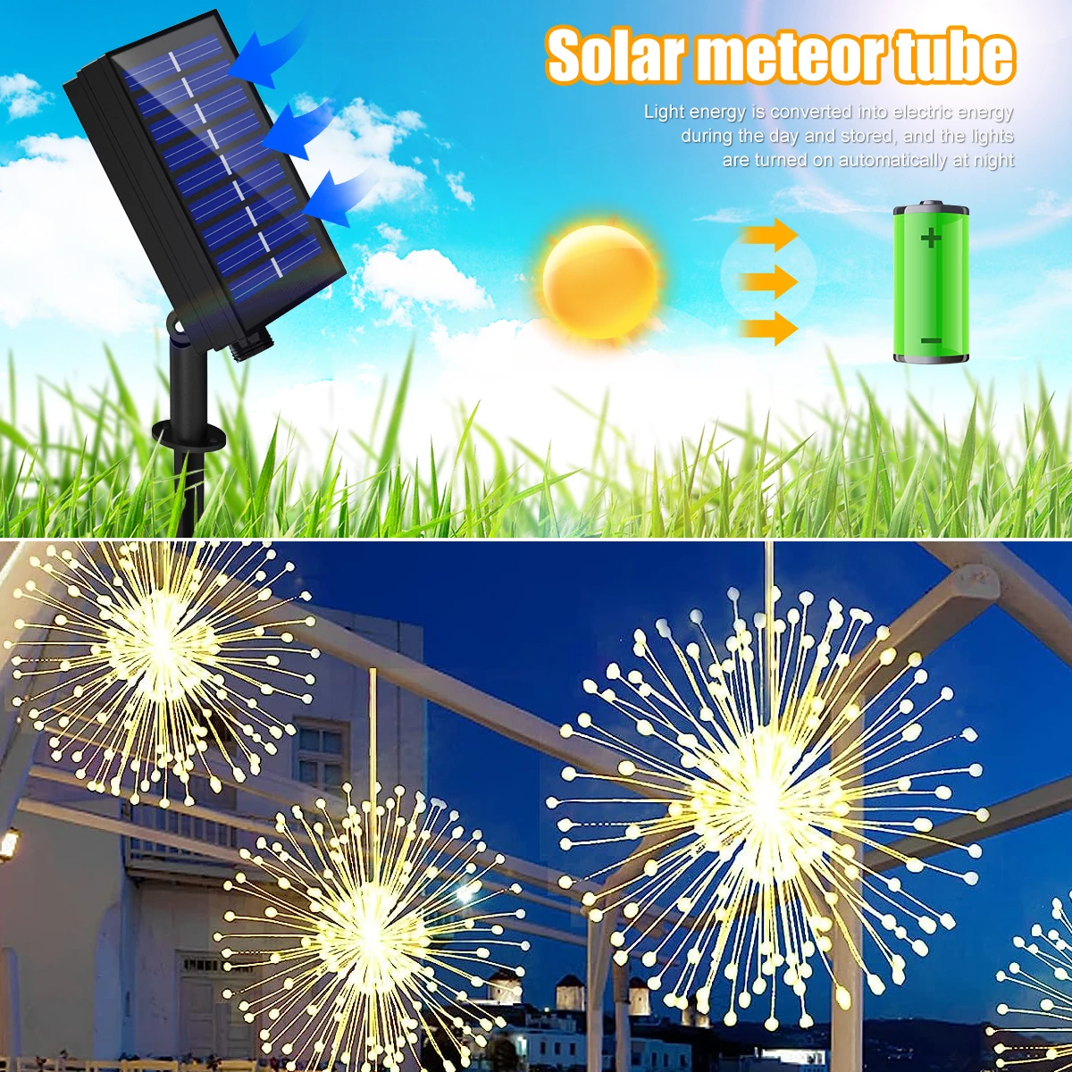 4PCS 360/480LED Solar Fireworks Lights Outdoor Waterproof Hanging 8 Modes Star Burst Light For Party Wedding Garden DIY Decor