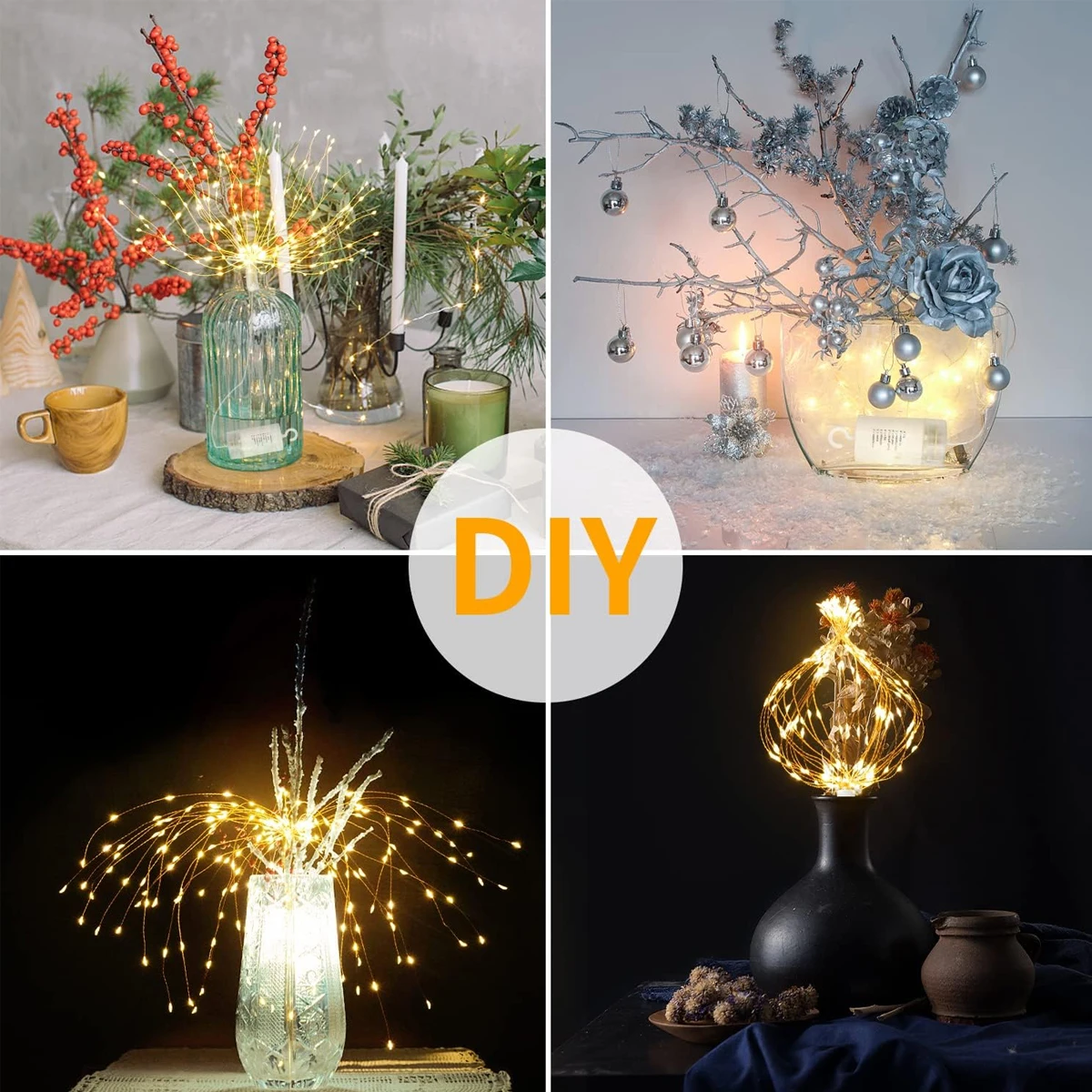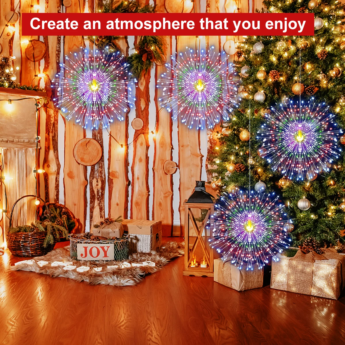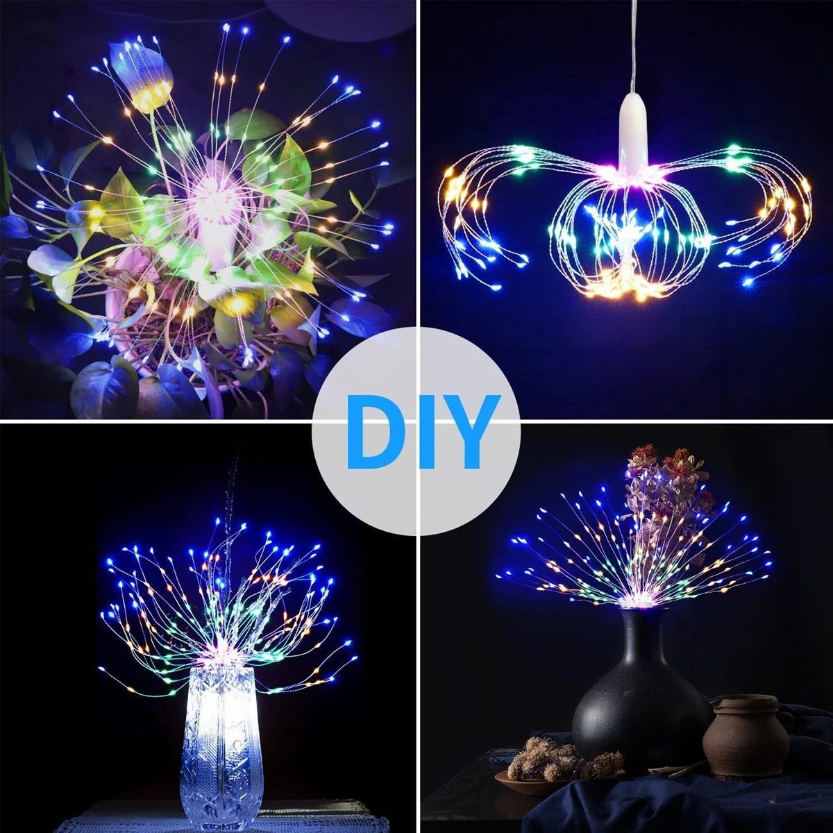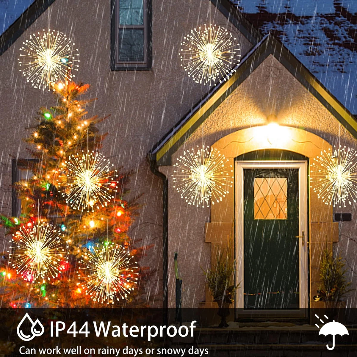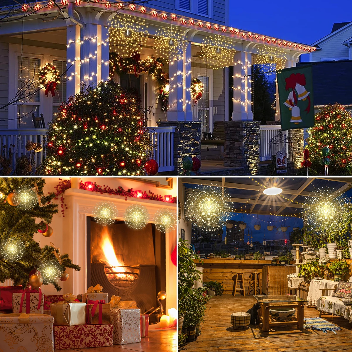 4PCS 360/480LED Solar Fireworks Lights Outdoor Waterproof Hanging 8 Modes Star Burst Light For Party Wedding Garden DIY Decor