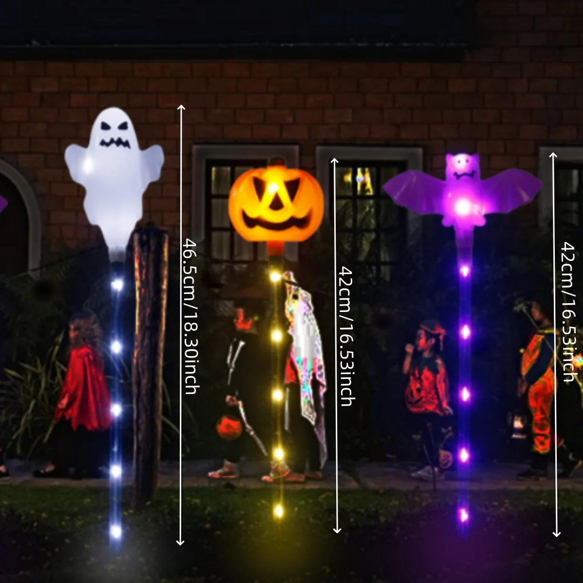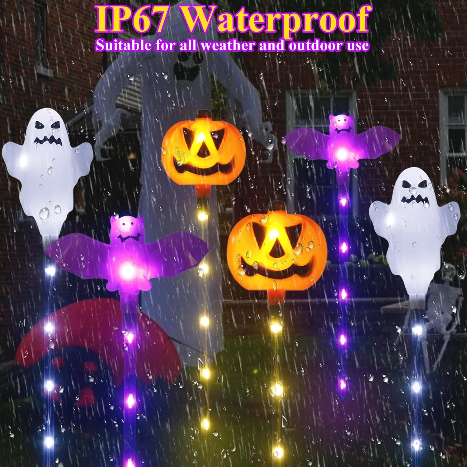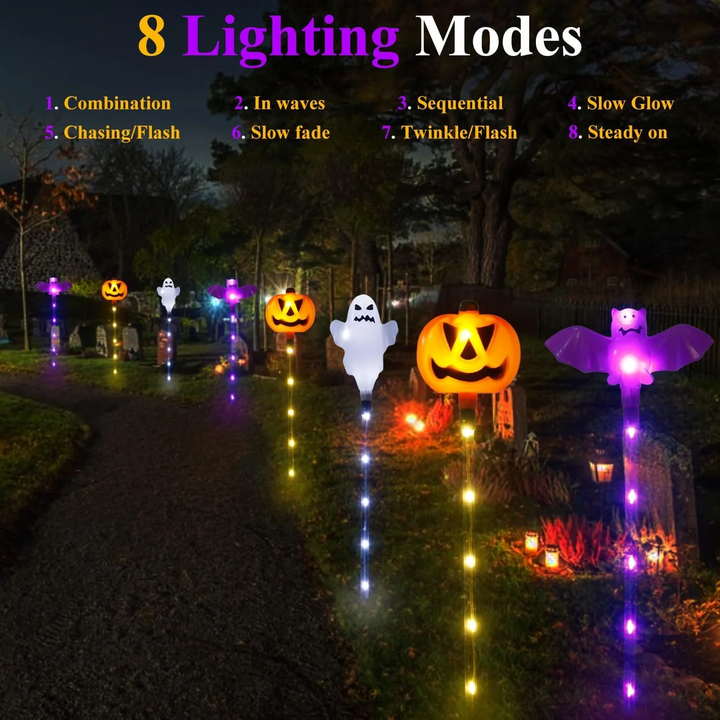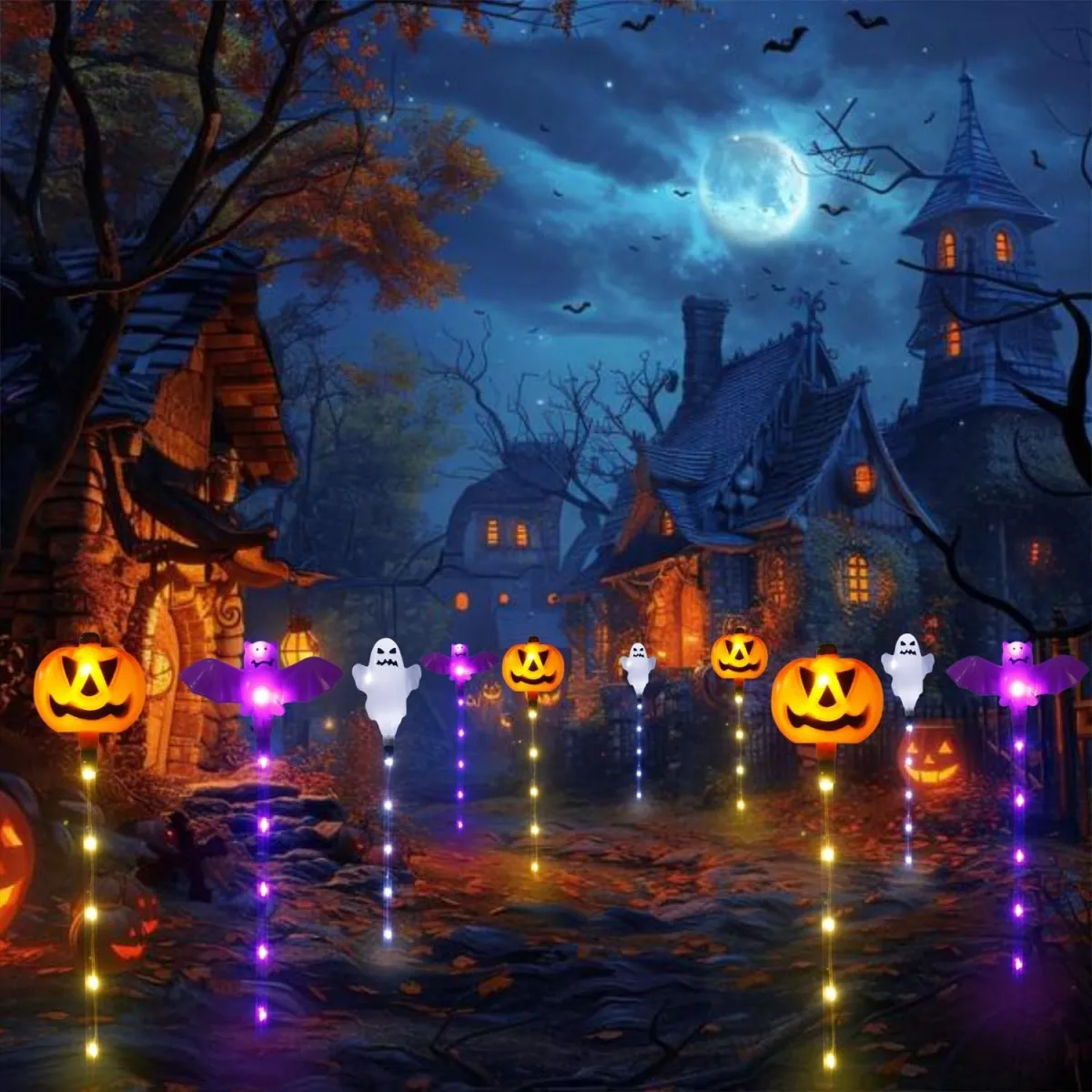 6pcs/Set Solar Powered 8 LED Pumpkin Bat Ghost Garden Stake Light Halloween Outdoor Landscape Lamp For Home Yard Halloween Decor