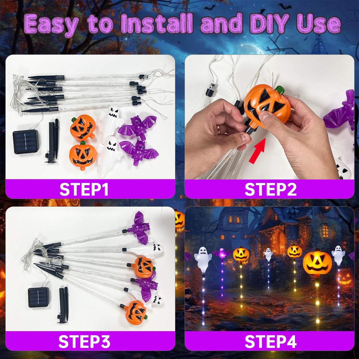 • Solar Powered Halloween Pumpkin Lights: Ground-Mounted Pumpkin Lights