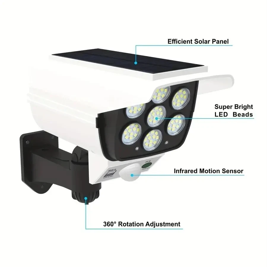 77 LED Outdoor Motion Sensor Solar Lights FloodLight Waterproof Wireless Dummy Decoy Fake Security Camera for Porch Garden Patio