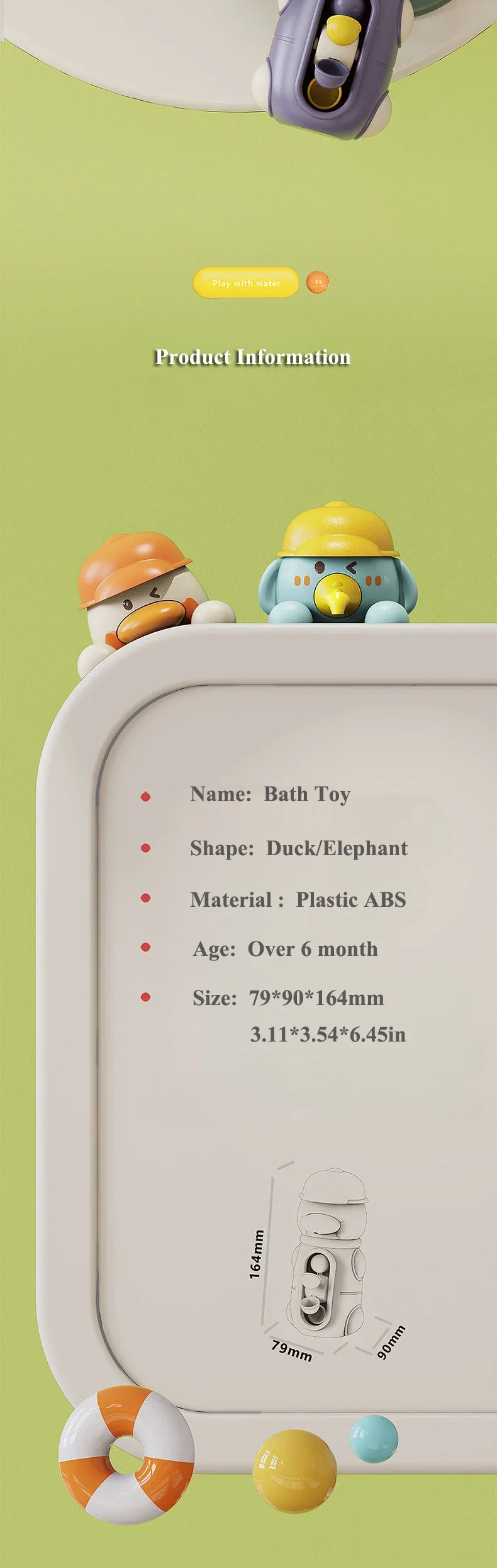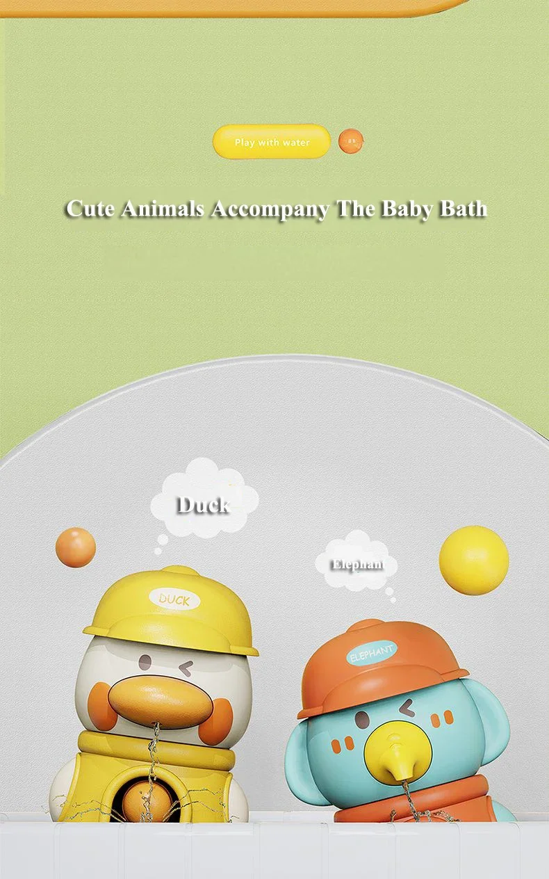Made from non-toxic PE plastic with CE certification. This cute duck and elephant toy encourages curiosity and early learning, helping children explore water flow and cause-effect in a playful way.