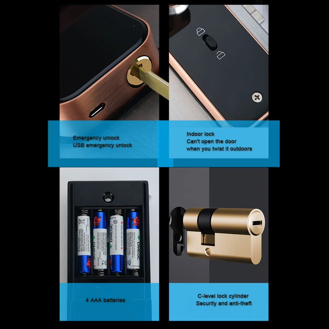 - Ways To Unlock: App,Mechanical Keys,Card,WiFi,Other,Password,FINGERPRINT