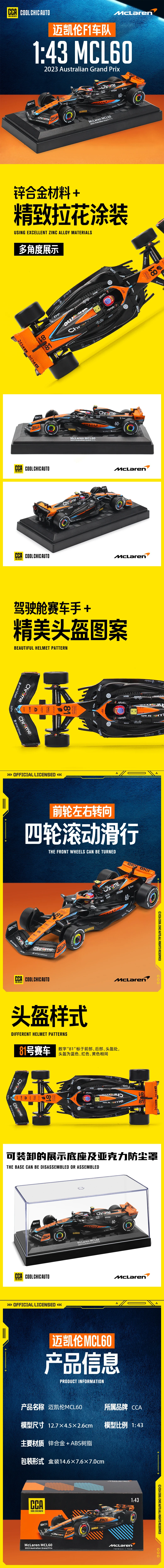 CCA MSZ 1:43 McLaren F1 Team 2023 MCL60 4# Lando Norris 81# Oscar Piastri alloy car model toy series collection gift