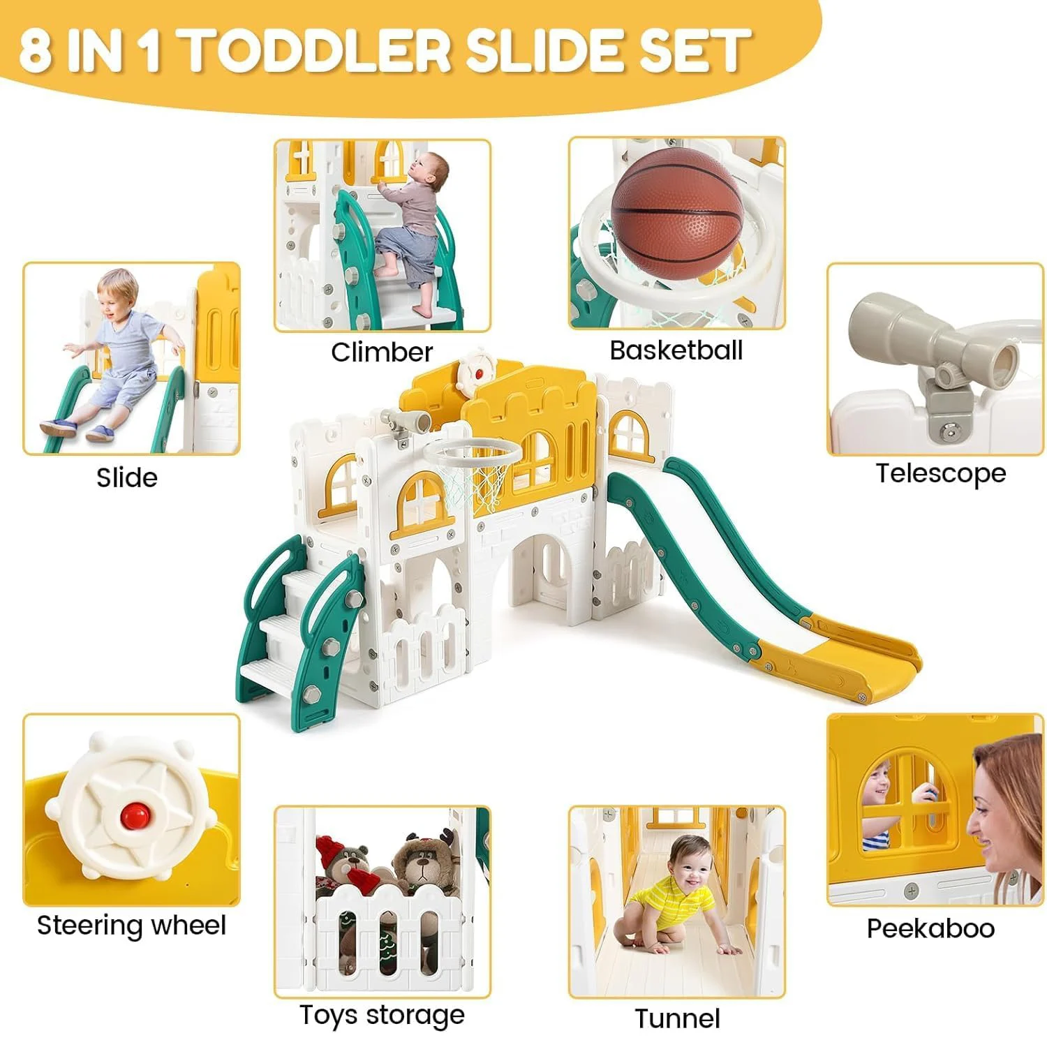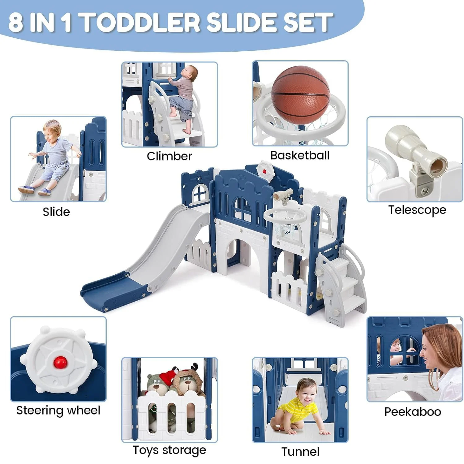Children’s Slide Outdoor Indoor Domestic Baby Sports 8 in 1 Slide Playset Family Multifunction Amusement Park Toys