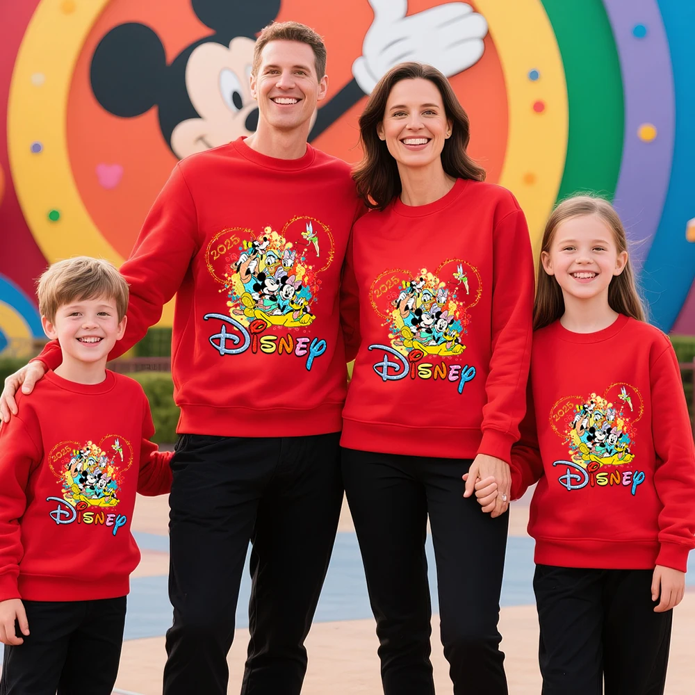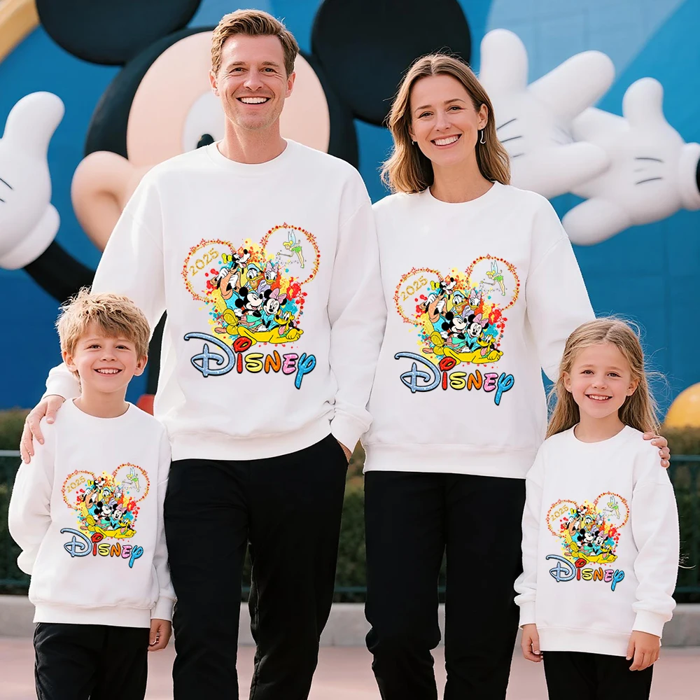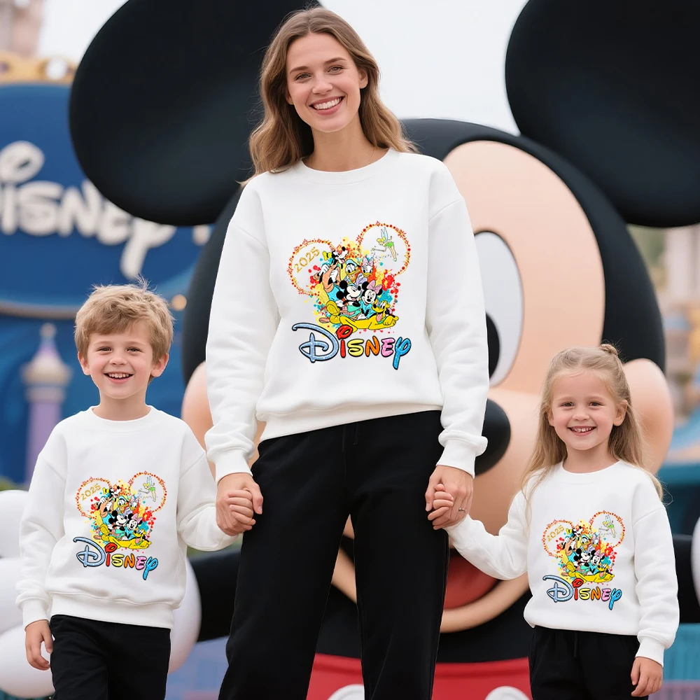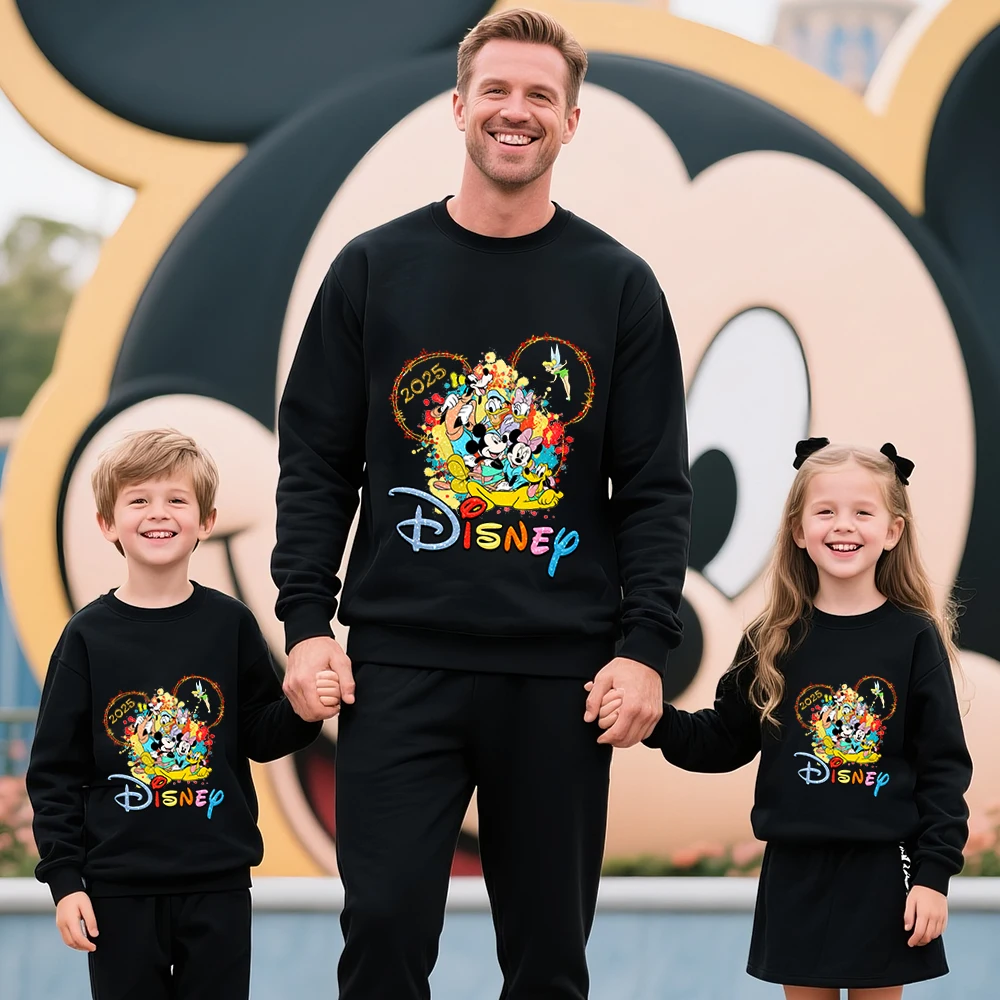 Disney Mickey Mouse Print Cotton Sweatshirt 2025 Family Trip Matching Outfit for Parents and Kids Unisex Travel Wear