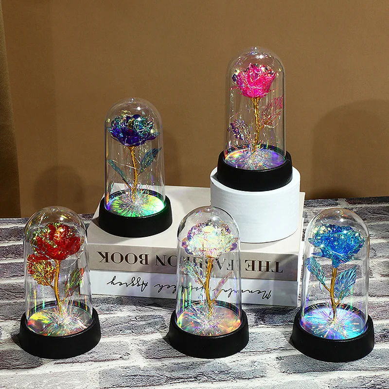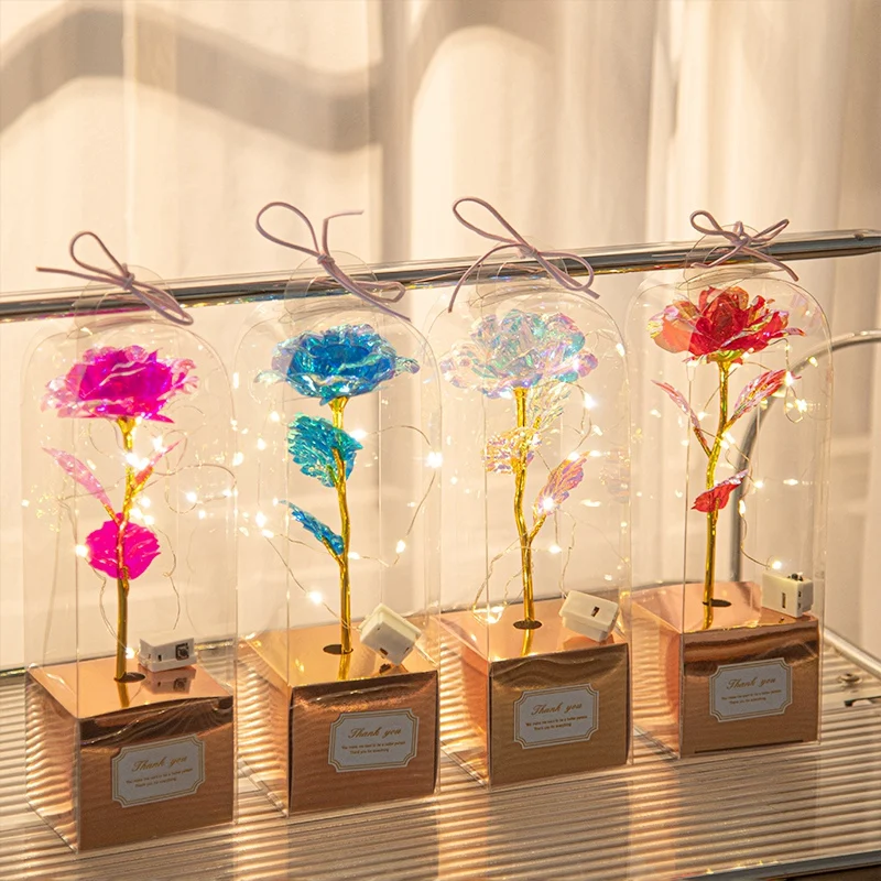 Eternal Flower Galaxy Rose Artificial Flowers in Transparent Box Valentine’s Day Gift Colorful Golden Foil Rose Desktop Ornament