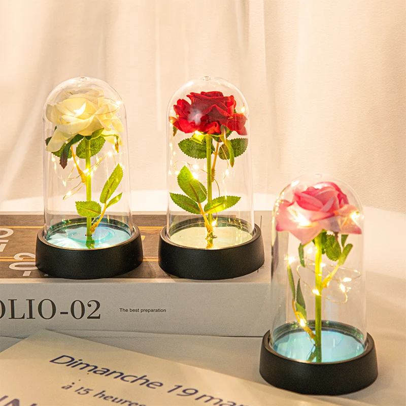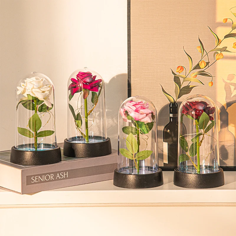 ❤ Rose in Dome: The rose is made from silk, looks like real rose. And the plastic dome is made of high borosilicate glass, more transparent and beautiful.