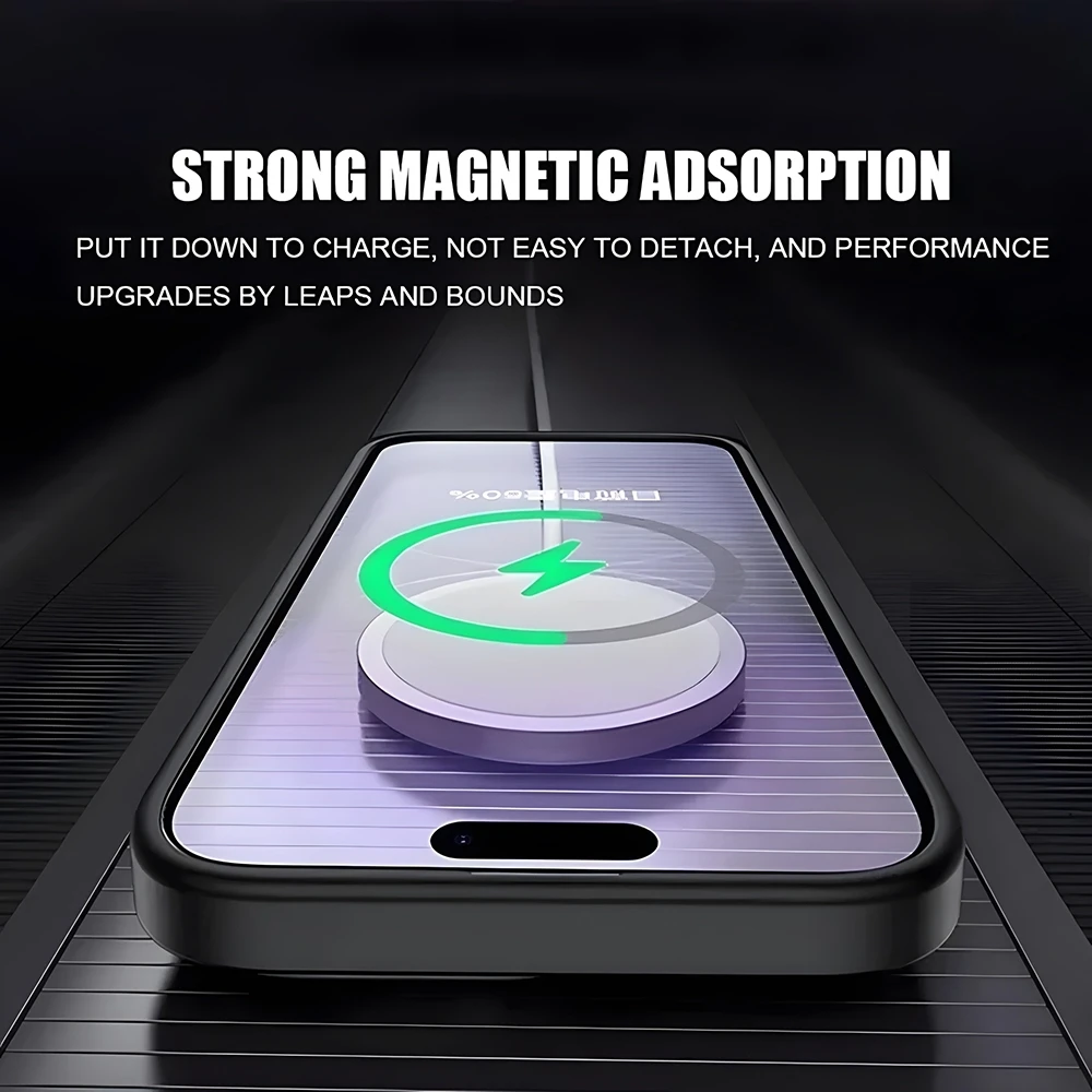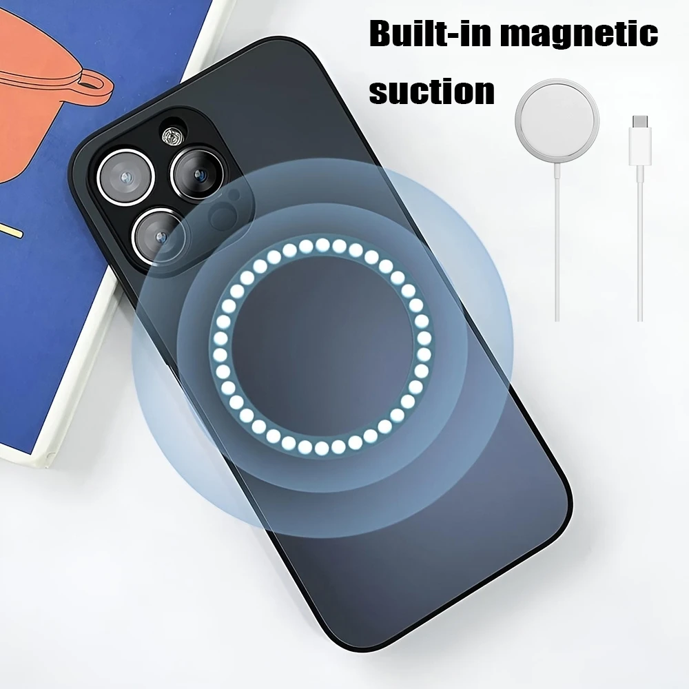 New creative strong magnetic glass phone case, full lens included, supports magnetic charging, wireless charging