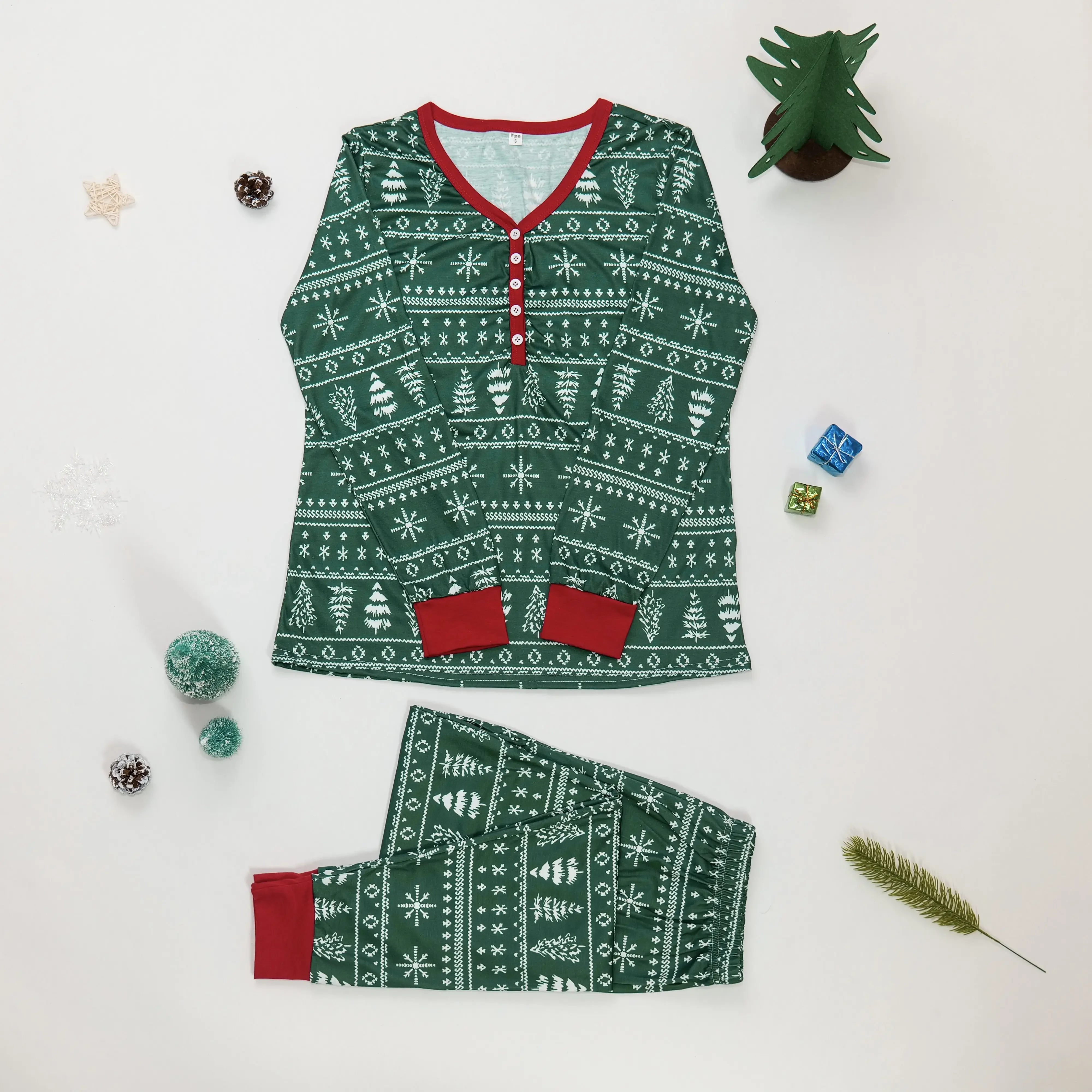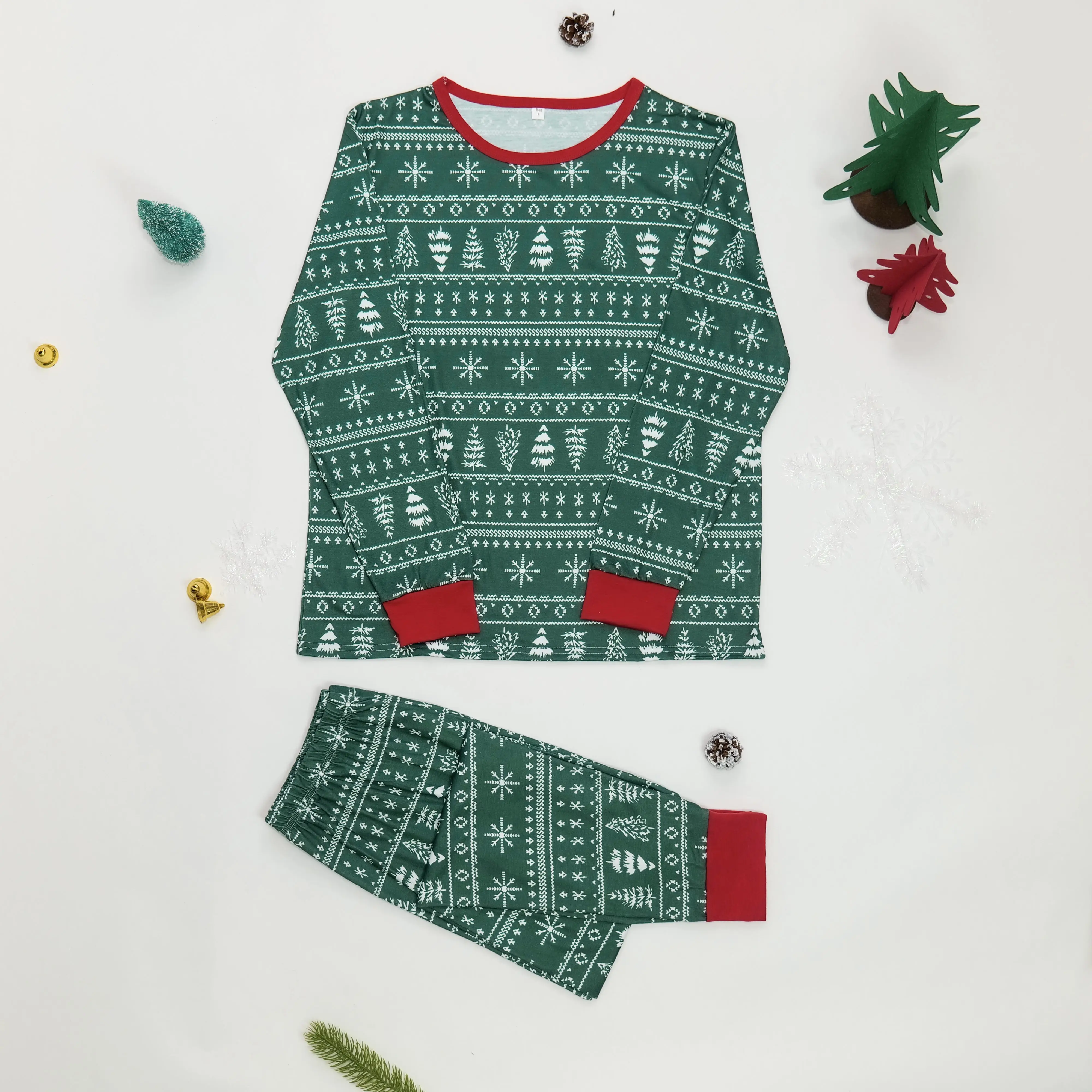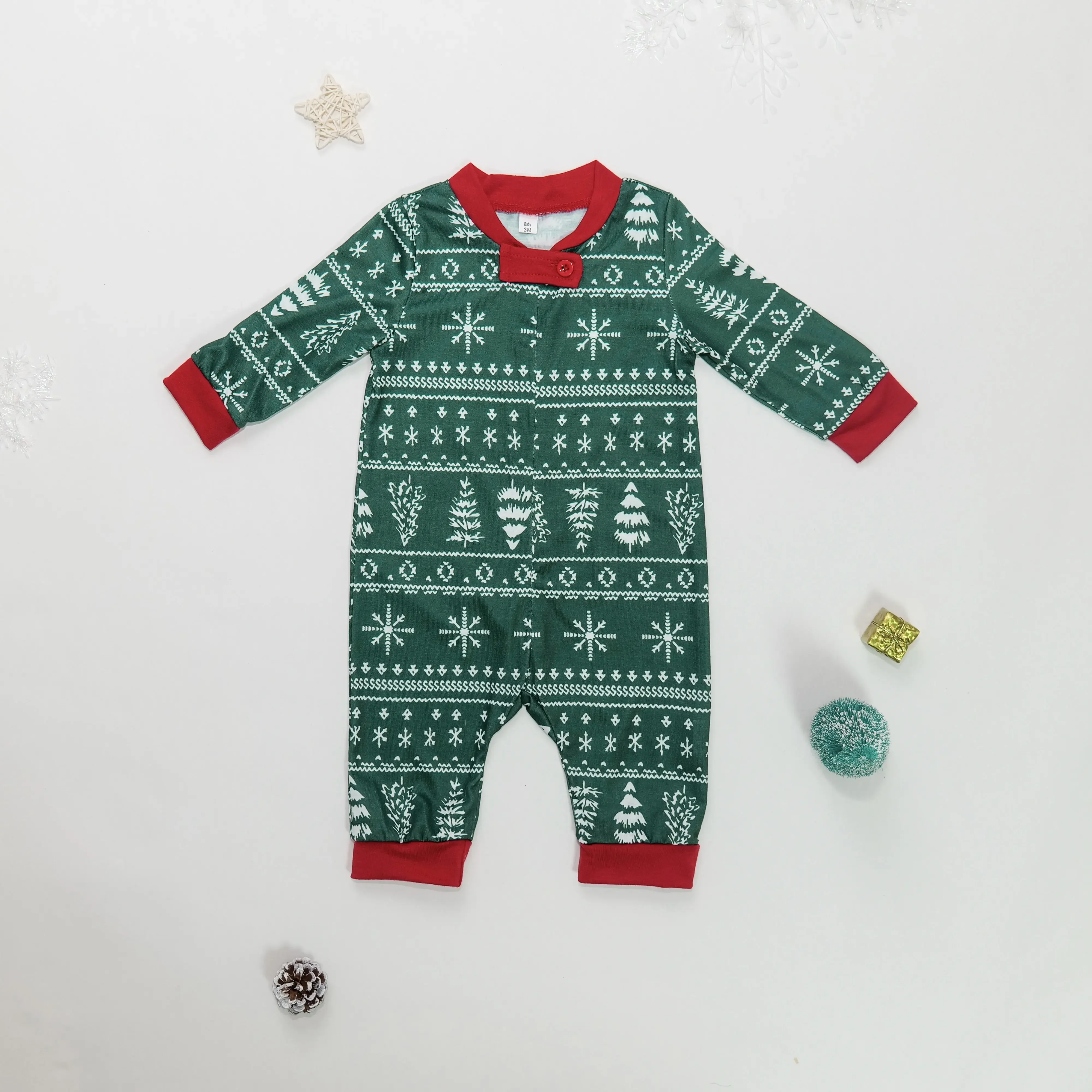 Green Print Family Christmas Pajamas Set Cute Soft Mom Daughter Dad Son Matching Clothes 2 Pieces Suit Baby Romper Xmas Look Pjs