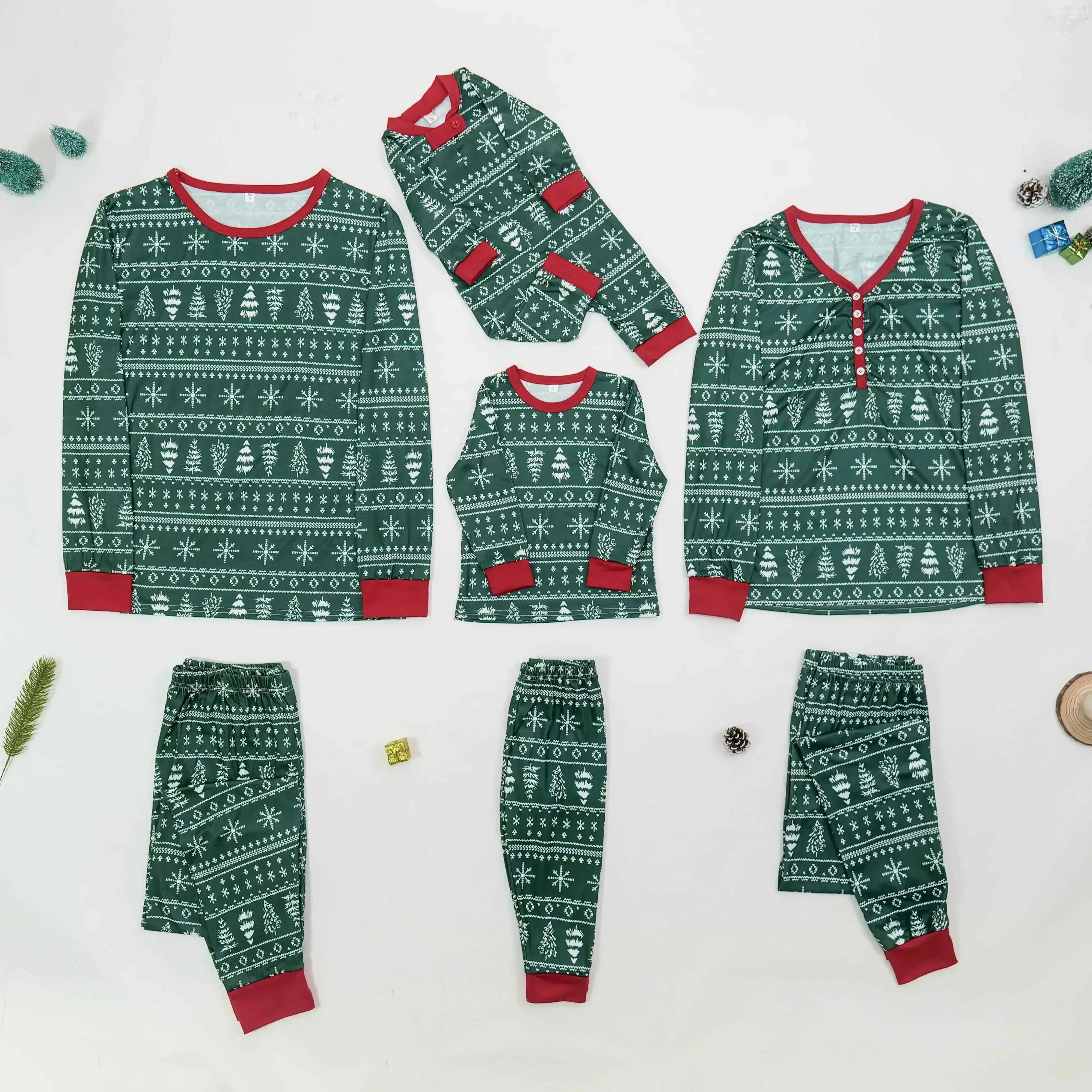 Green Print Family Christmas Pajamas Set Cute Soft Mom Daughter Dad Son Matching Clothes 2 Pieces Suit Baby Romper Xmas Look Pjs