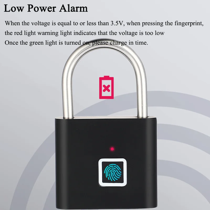 Features: Semiconductor fingerprint recognition; Unlock in 0.5 seconds; Low battery reminder; USB interface charging; Zinc alloy material; High battery capacity and long endurance