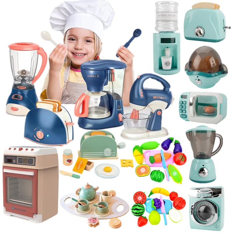 Kids Pretend Play Toy Kitchen Home Appliances Playset Juicer Mixer Vacuum Toaster Set Household Educational Toys for Child Gifts