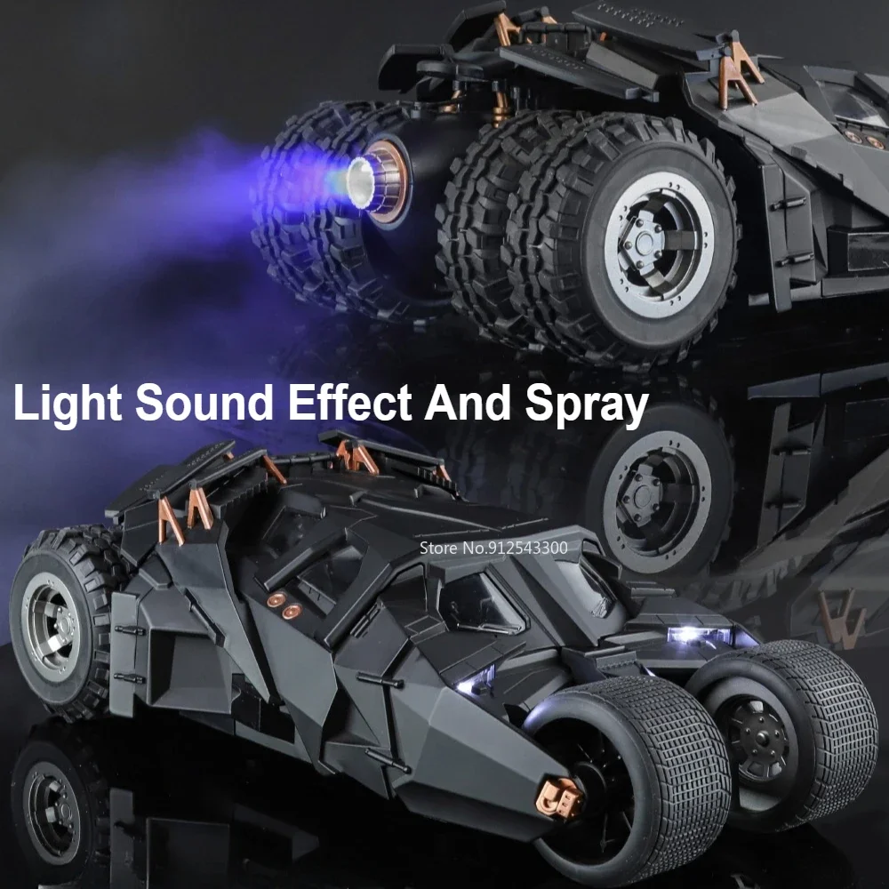 Large Scale 1:18 Batmobile Car Model Toy The Dark Knight Trilogy Sound Light Sliding Spray Alloy Vehicle Models Ornaments Gifts