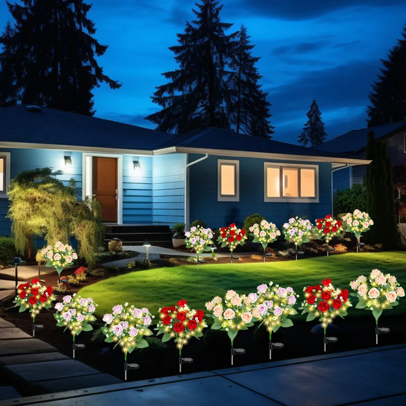 The solar flowers are designed with 56 colorful lights wrapped around the stems, making it brighter and more eye-catching. At the same time, the solar panels have been upgraded to achieve faster conversion efficiency and longer lifespan, providing up to 8 hours of illumination when fully charged.