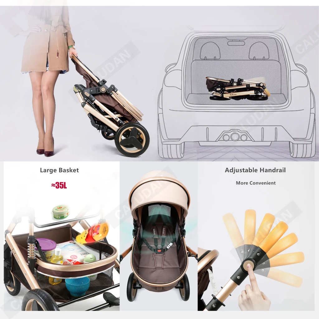 Luxurious 3 in 1 Portable Travel Baby Stroller High Landscape Aluminum Frame Foldable Pram Newborn Infant Four-Wheel Carriage