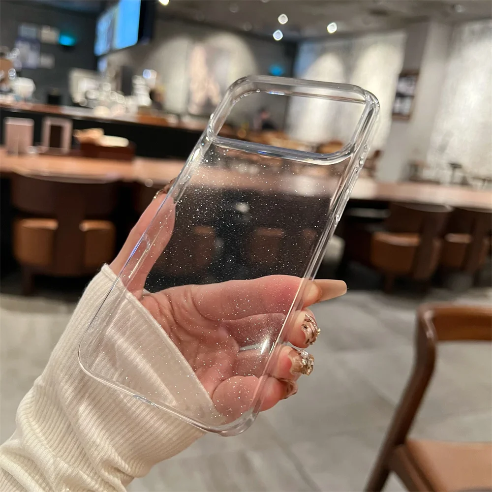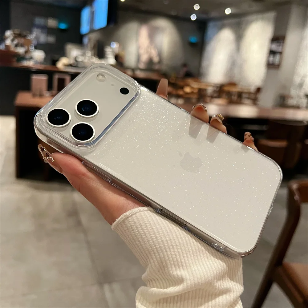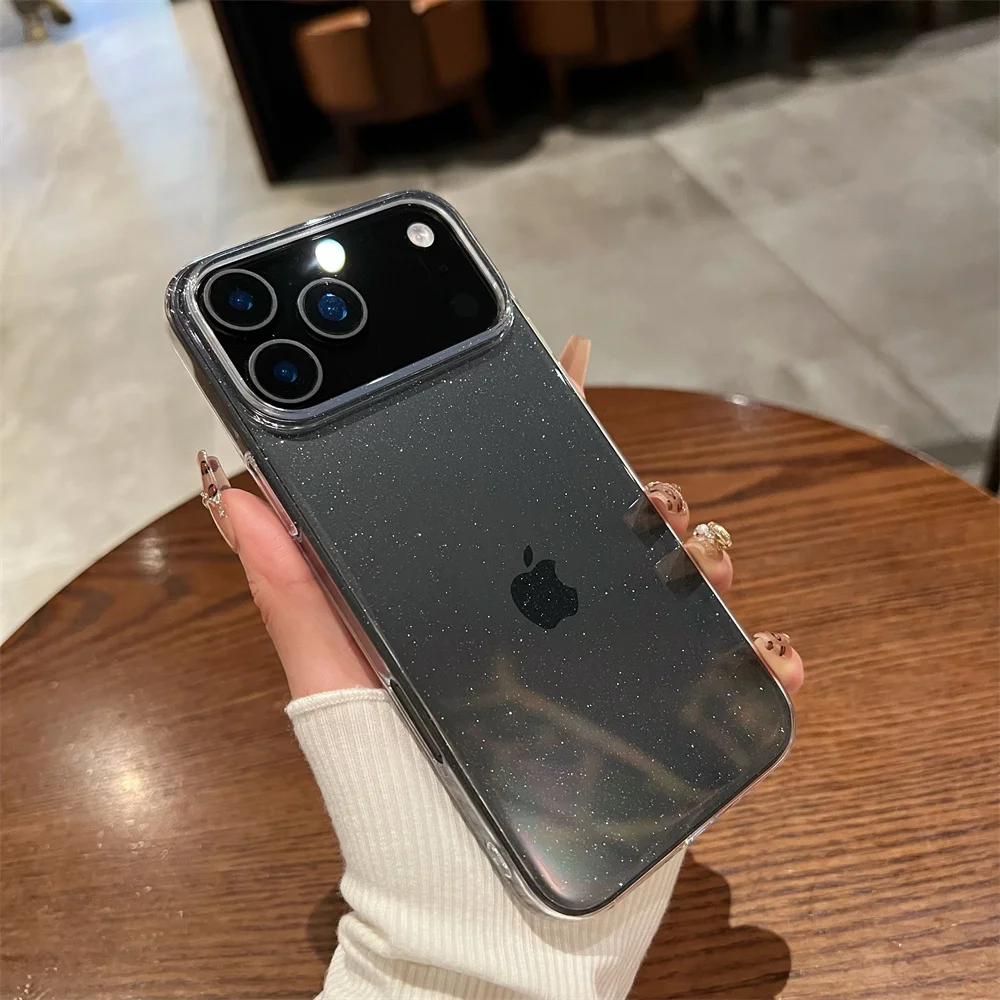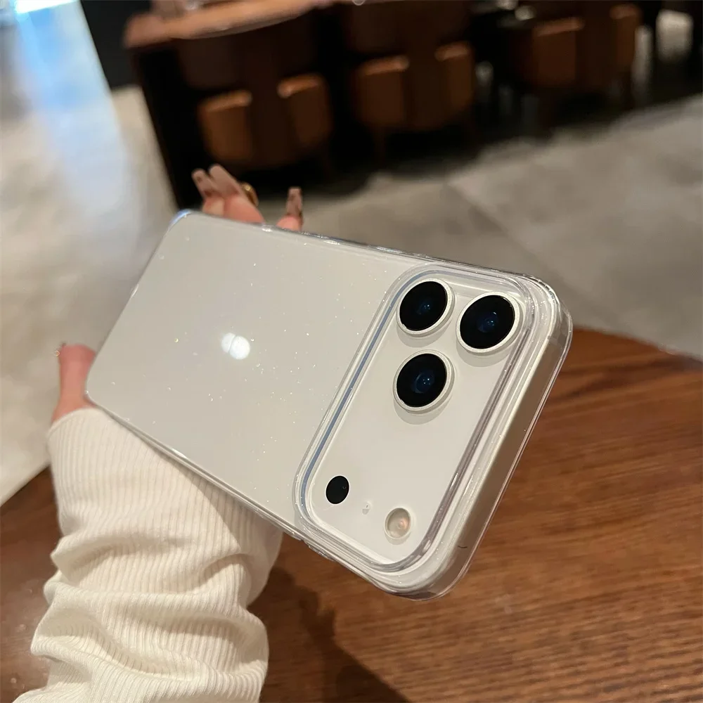 Luxury Bling Glitter Clear Phone Case For iPhone 17 Air 16 15 14 13 12 Pro Max Shiny Shockproof Transparent Hard PC Cover Bumper
