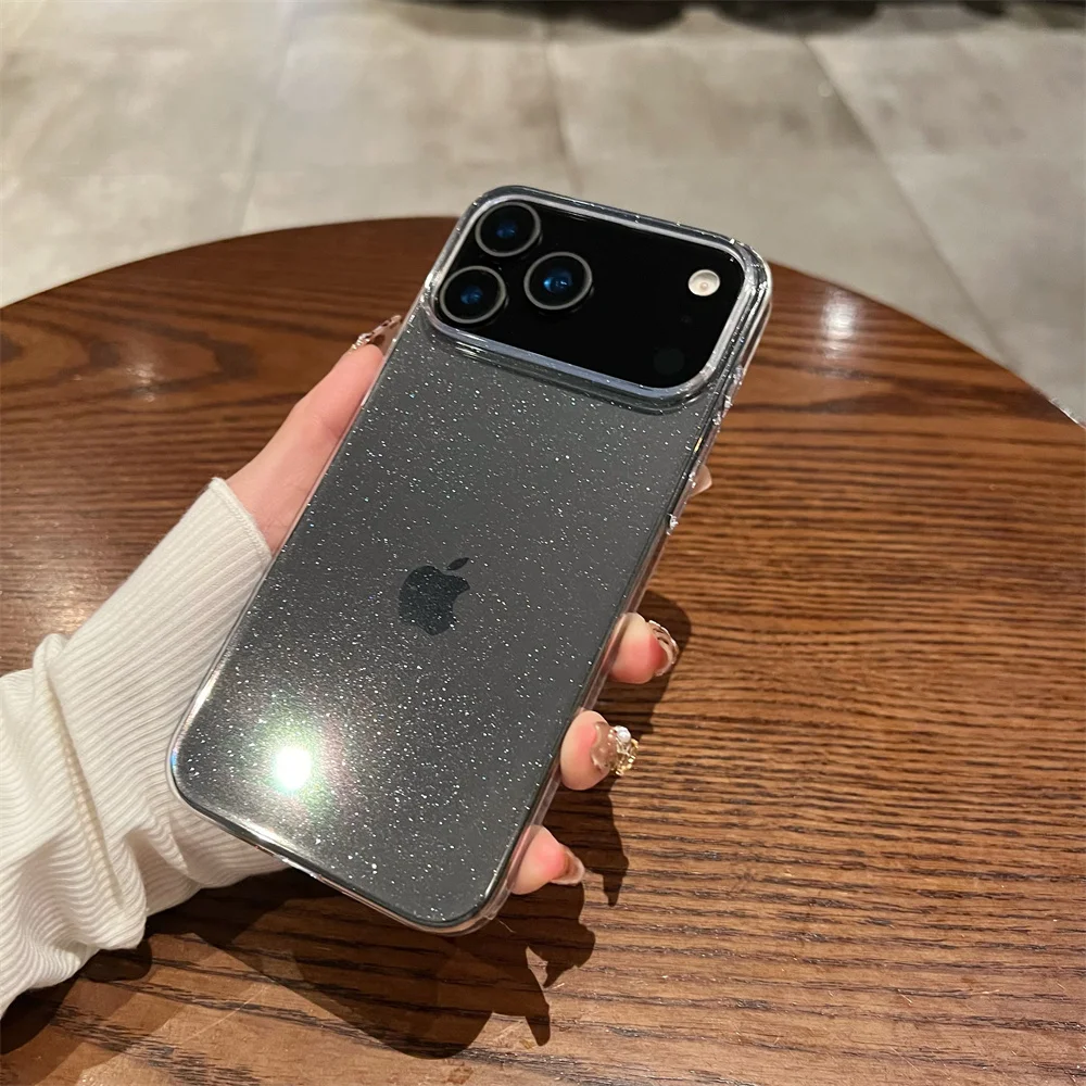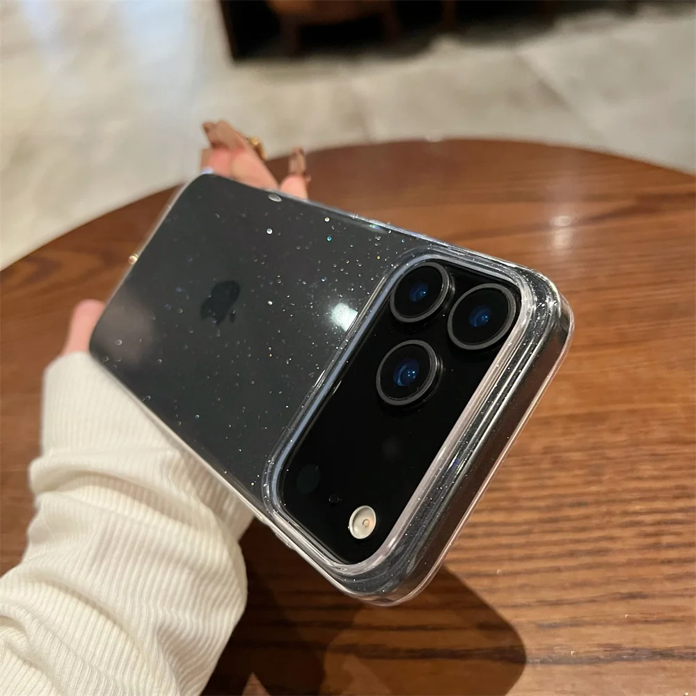 Luxury Bling Glitter Clear Phone Case For iPhone 17 Air 16 15 14 13 12 Pro Max Shiny Shockproof Transparent Hard PC Cover Bumper