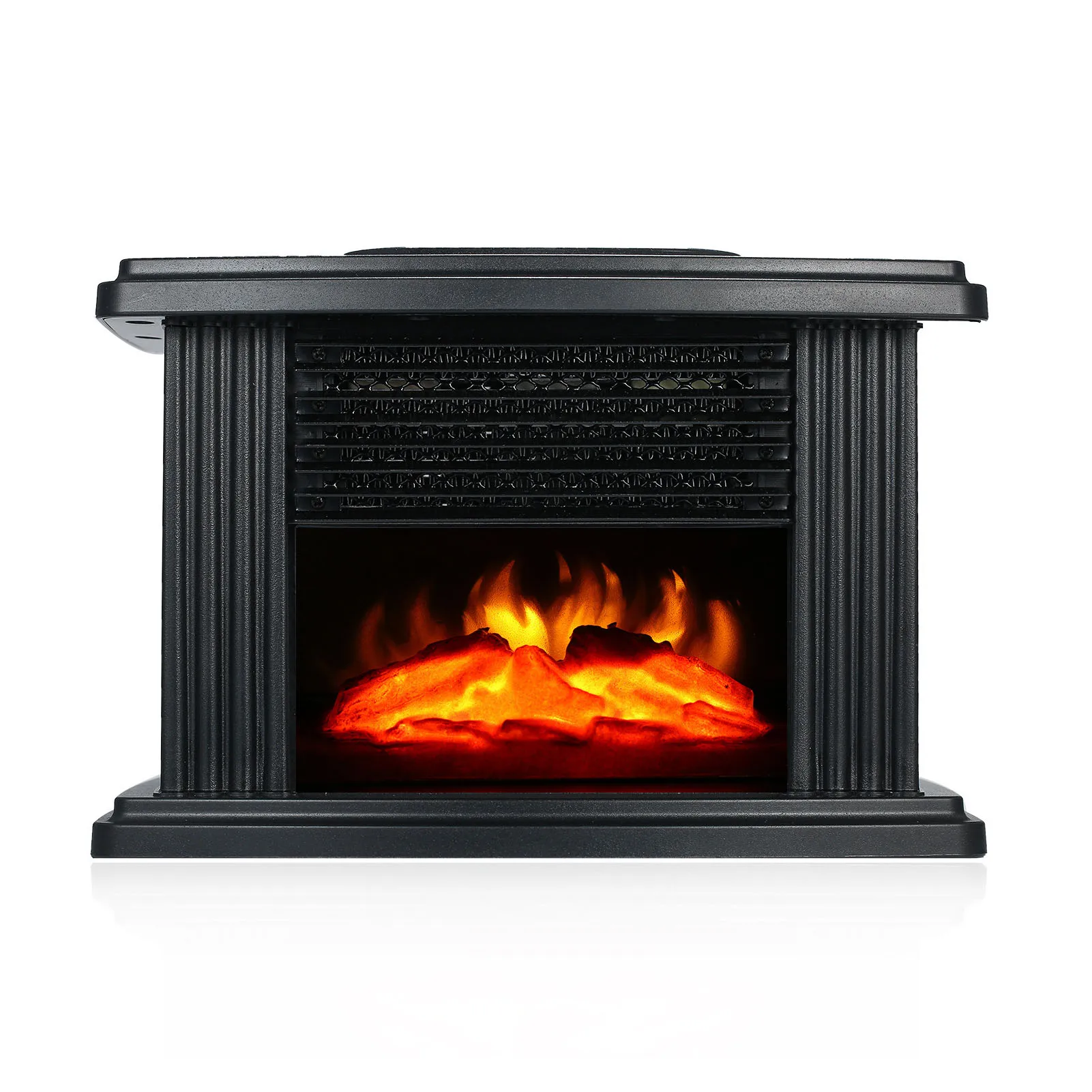Mini Electric Fireplace Heater Simulated Flame Quiet Operation Portable Heating Warmer Fan Space Heater with Remote Control