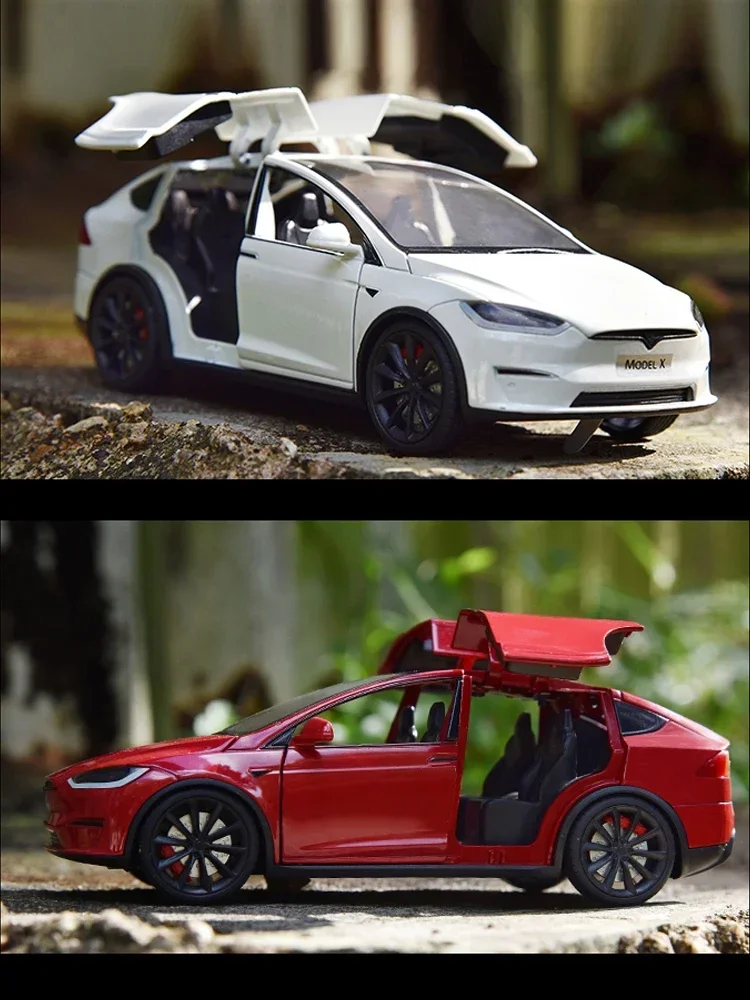 New 1:24 Simulation Tesla X Alloy Car Model Sound And Light Pull Back Toy Car Metal Electric Car Boy Collection Decoration Gift