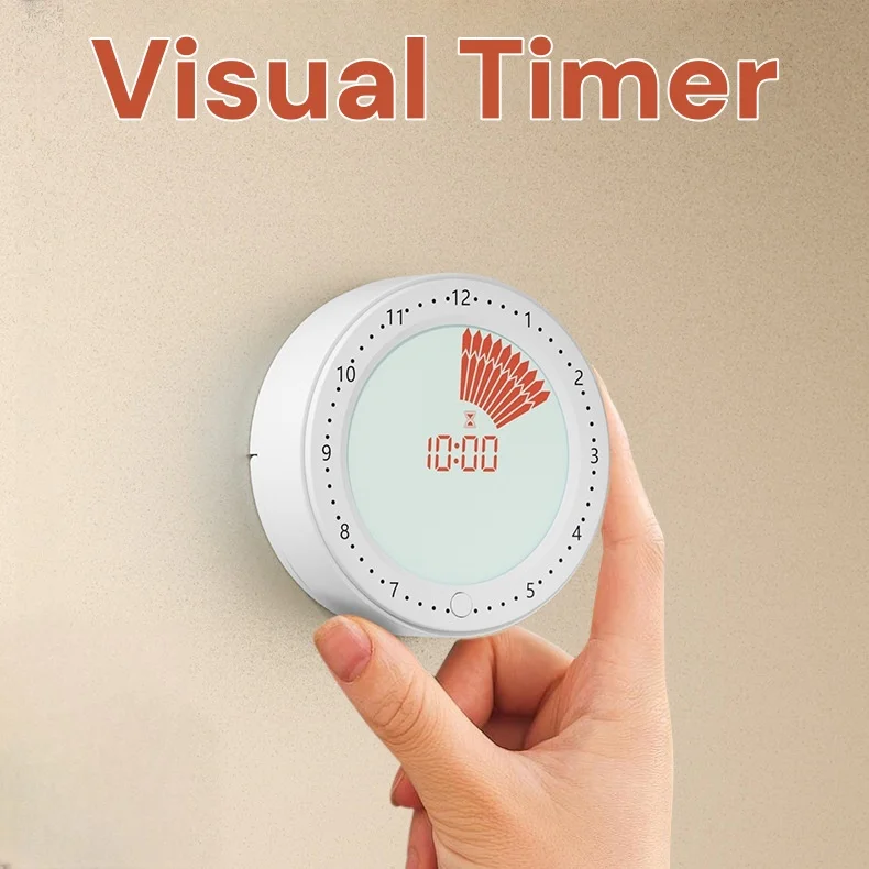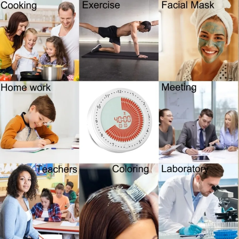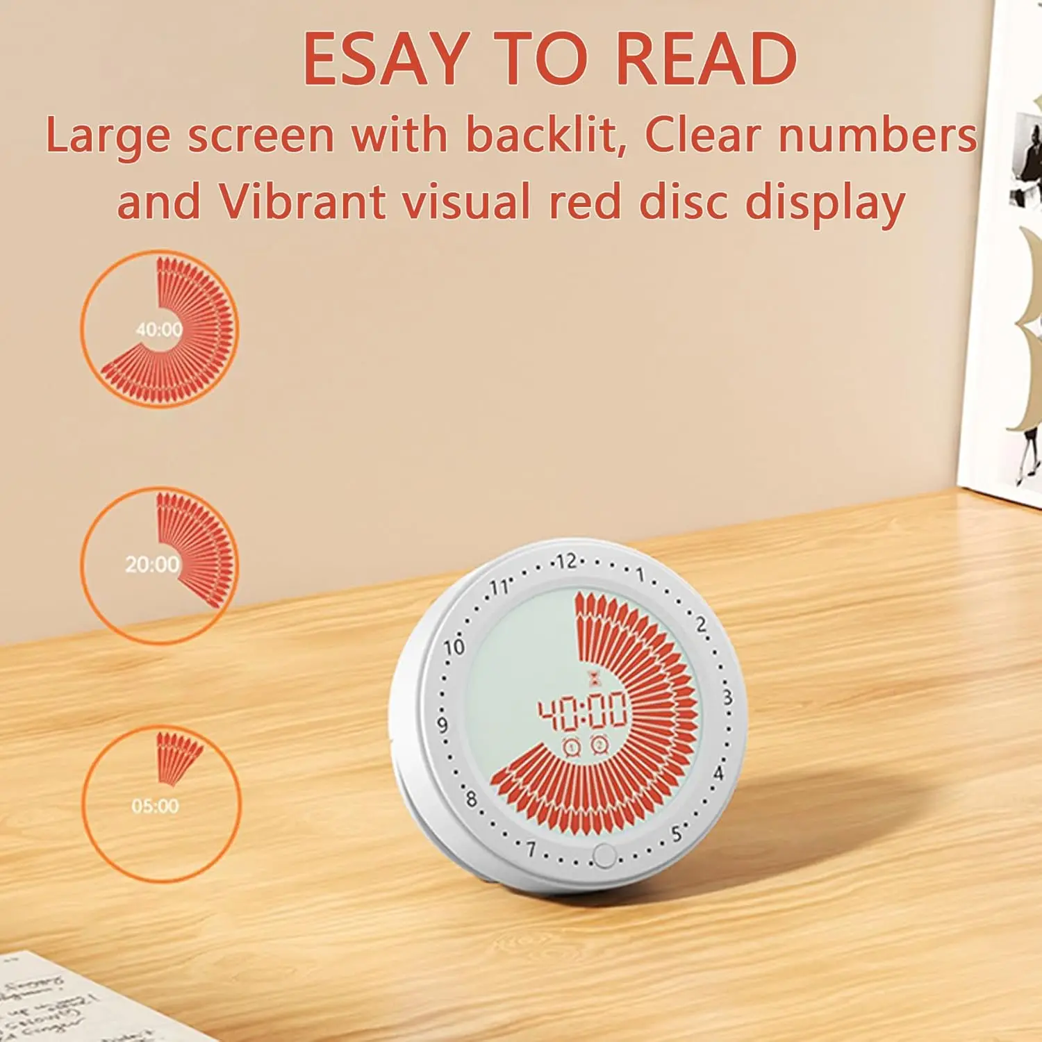 Pomodoro Digital Visual Timer,60min 2 Alarm Clock Study Kitchen Shower Cute Timer Back Magnetic Time Manager Gadgets Smart