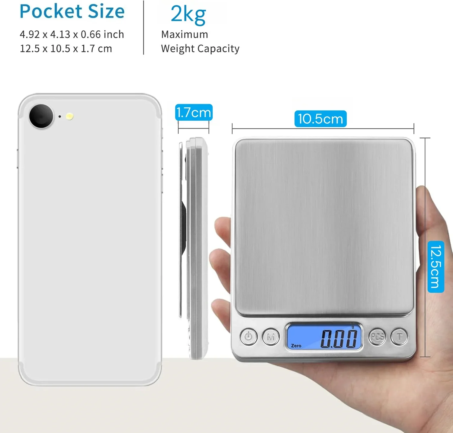 Compact and lightweight, this mini pocket scale is easy to carry, ideal for on-the-go use.