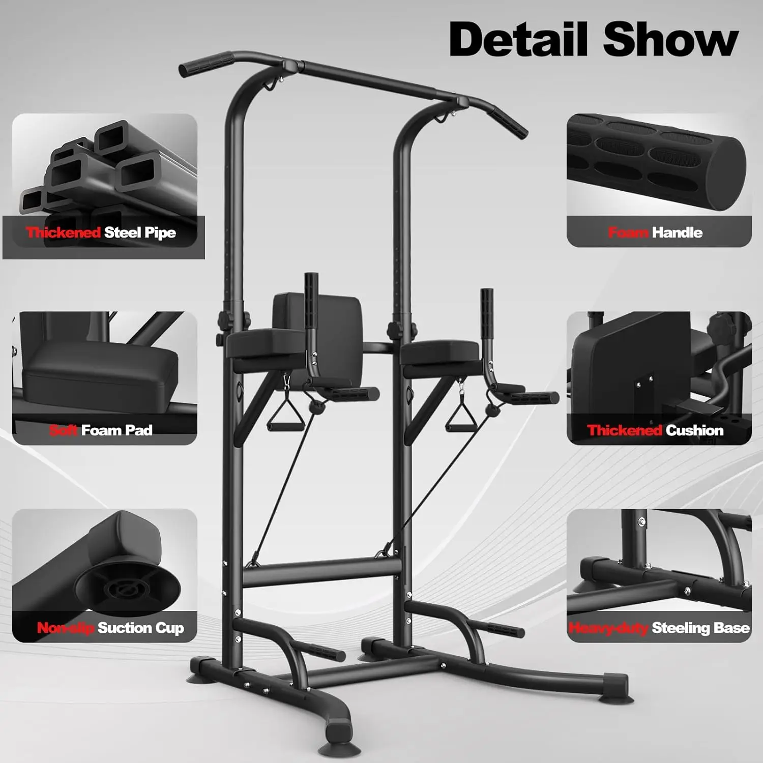 Thickened Steel Pipe / Foam Handle / Soft Foam Pad / Thickened Cushion / Suction Cup / Steeling Base