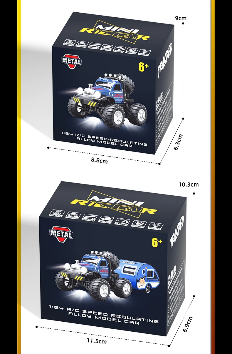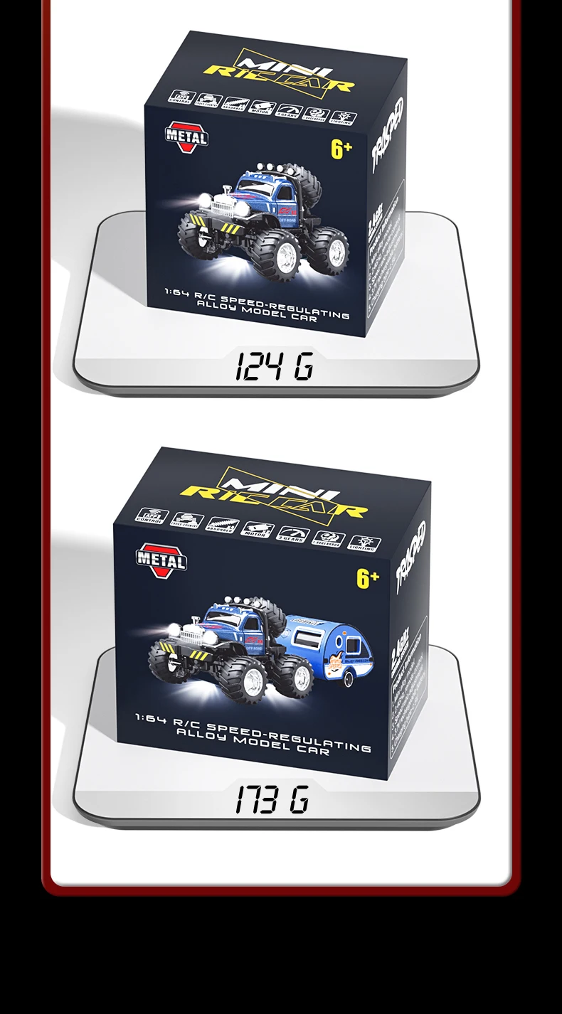 Q222 Q223 1:64 Mini RC Truck with Trailer Monster-Regulating Alloy All Terrain Remote Control Model Cars Toys for Kids Gift