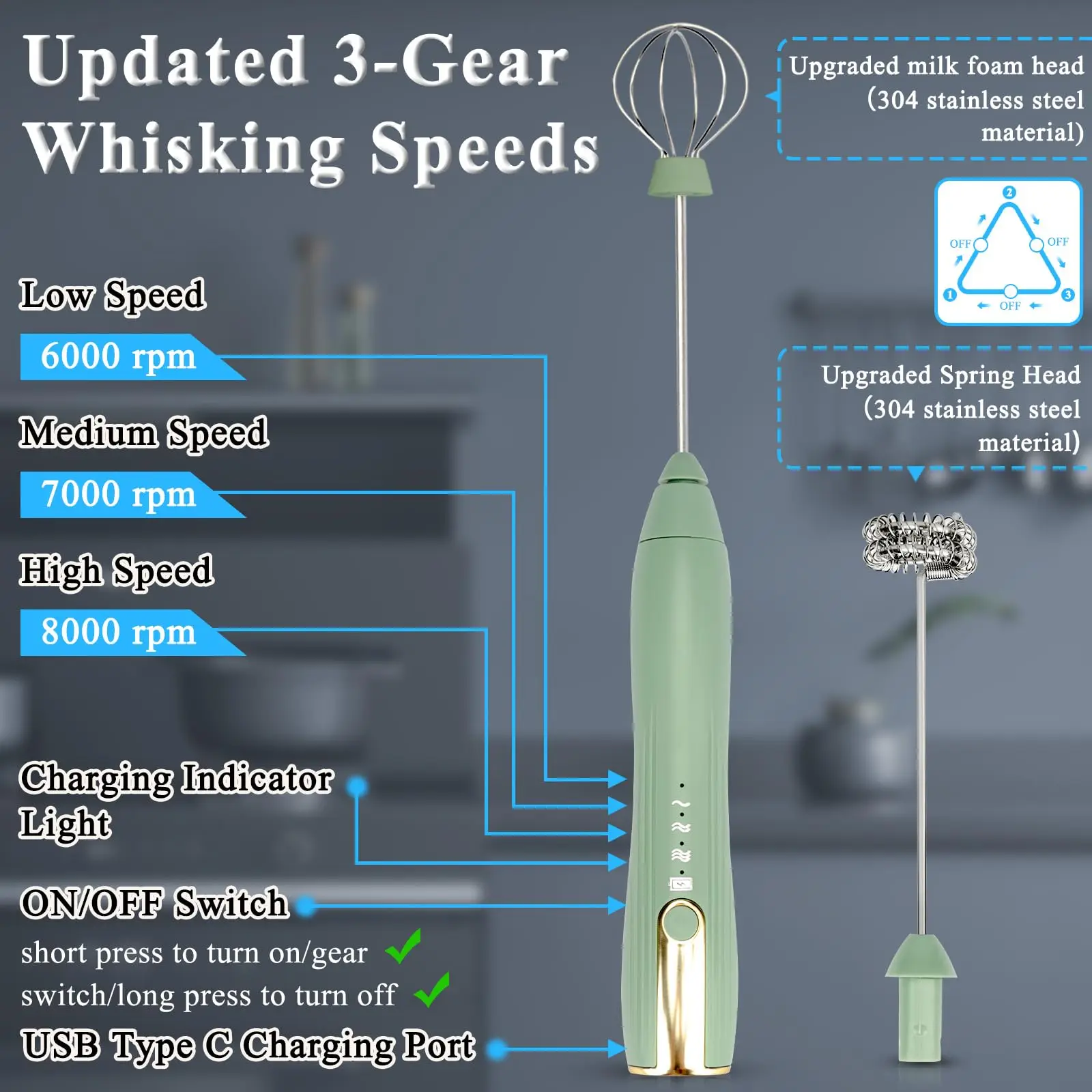 • 🎁【Great for Coffee Lover】: This milk foam maker is lightweight and has ergonomically designed soft touch handle. The frother for milk and coffee is so handy and useful that can for your friends and family too as gift. (Package come with 1 milk frother, 1 extra egg whisk head, 1 USB-C cable ,1 stand bracket and 1 instruction).
