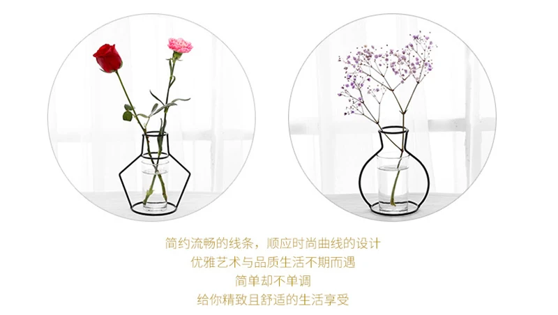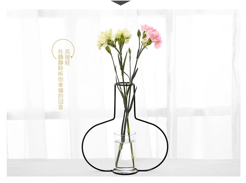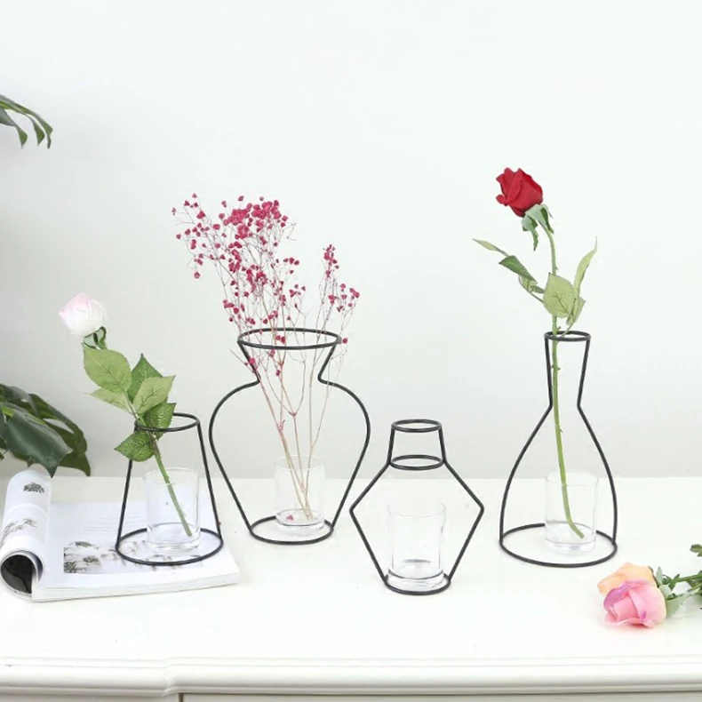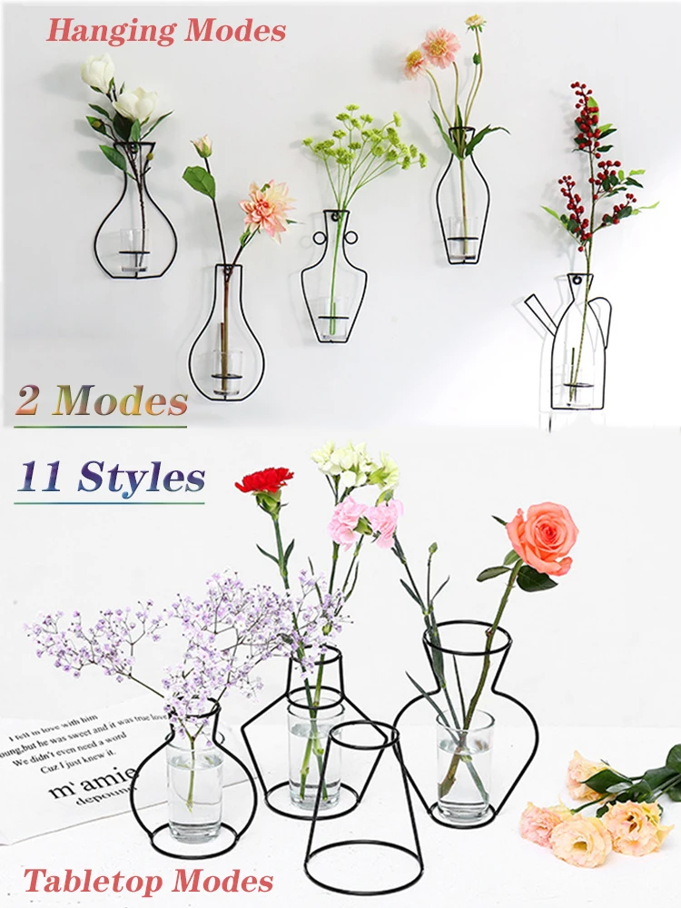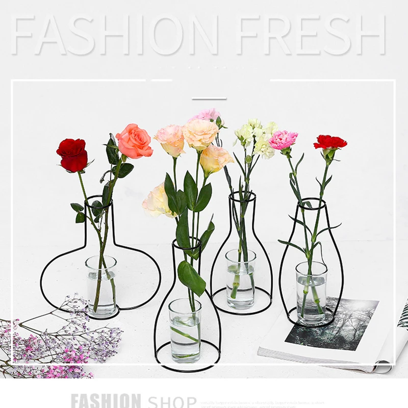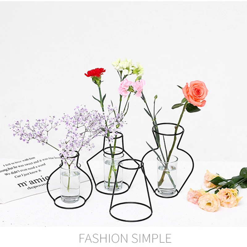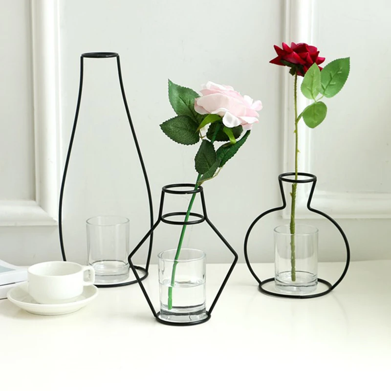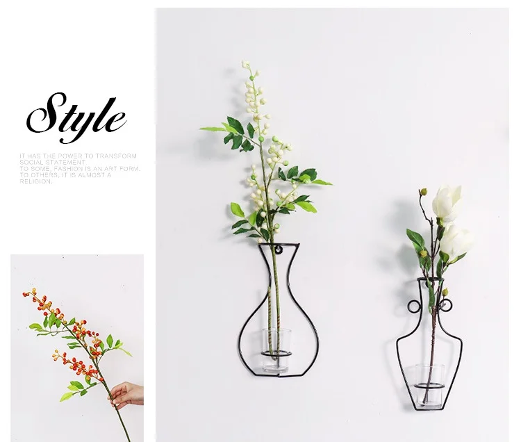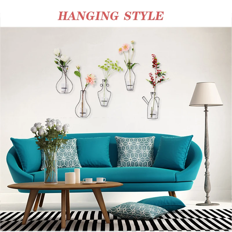 Retro Wrought Iron Hanging Vase Nordic Home Decoration Tabletop Plant Holder Dried Flower Vase Wall Decoration With Glass