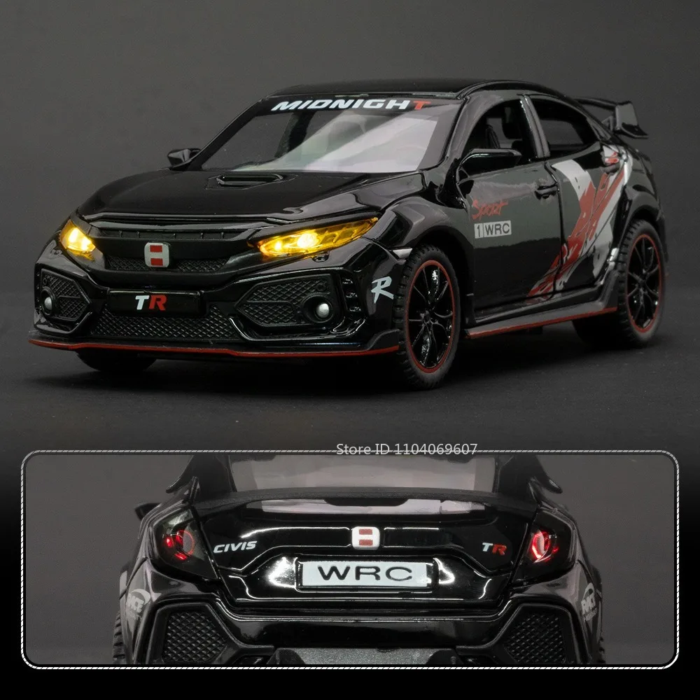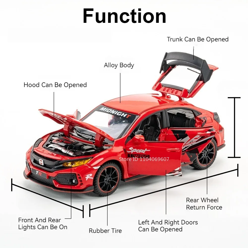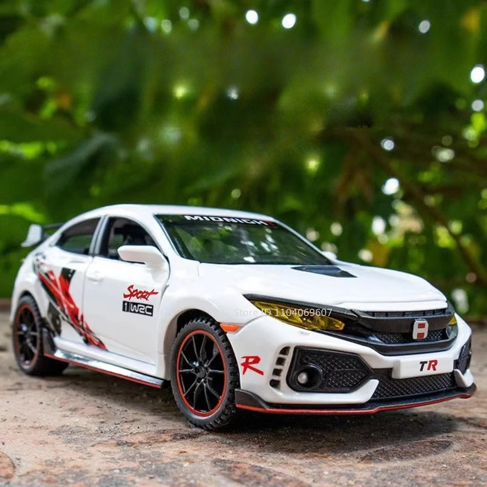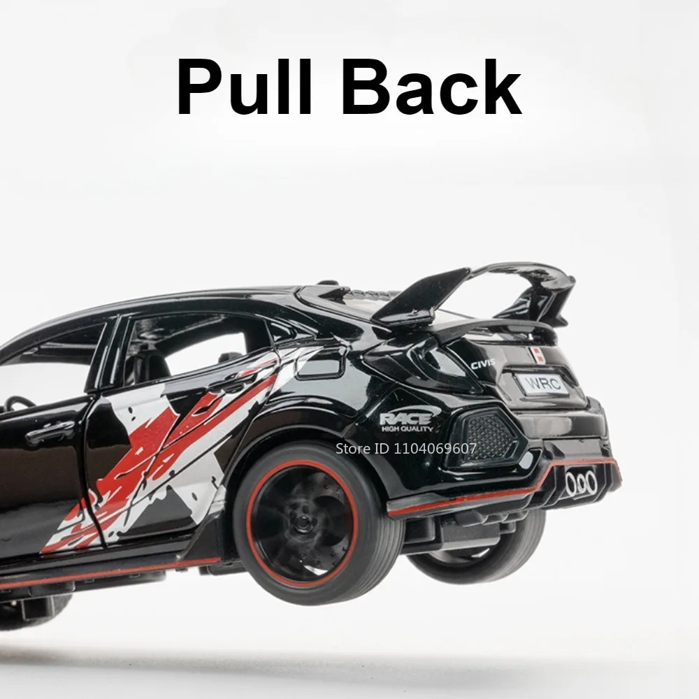 Scale 1:32 CIVIC TYPE-R Car Model Toy Doors Opened Music Light Pull Back Miniature Vehicle Models Deicast Metal Gifts for Kids