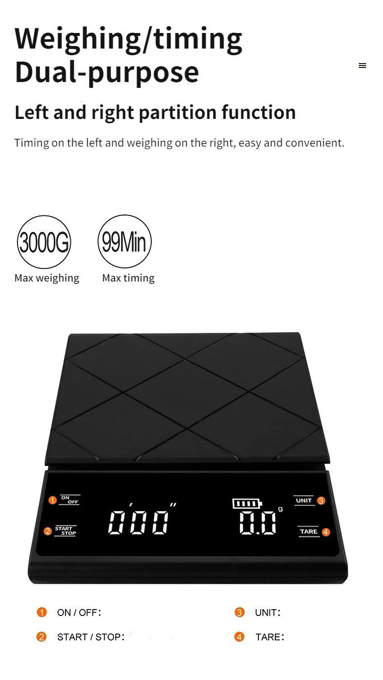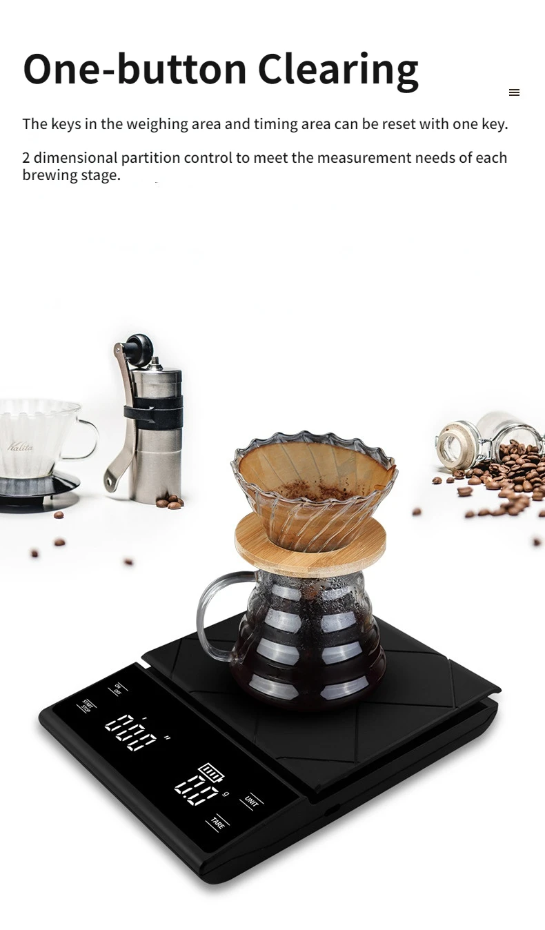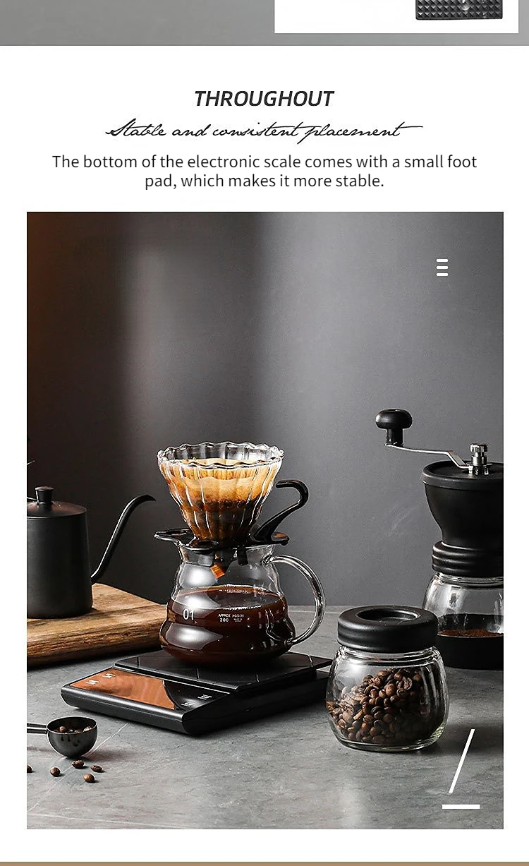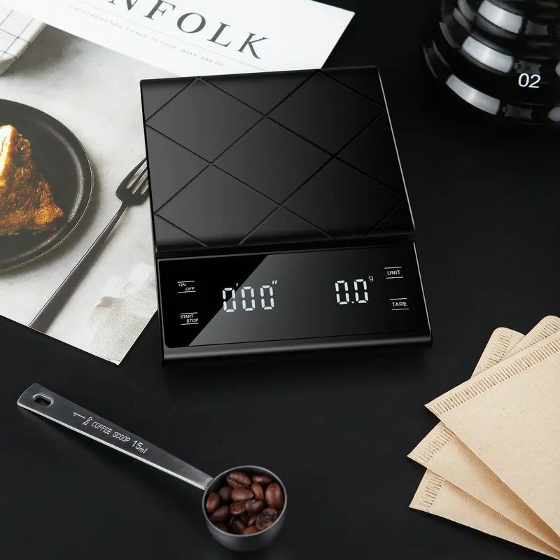 Smart Coffee Electronic Scale High Precision Digital Timing LCD Scale 3kg/0.1g Coffee Balance Measuring Weight Scale for Kitchen