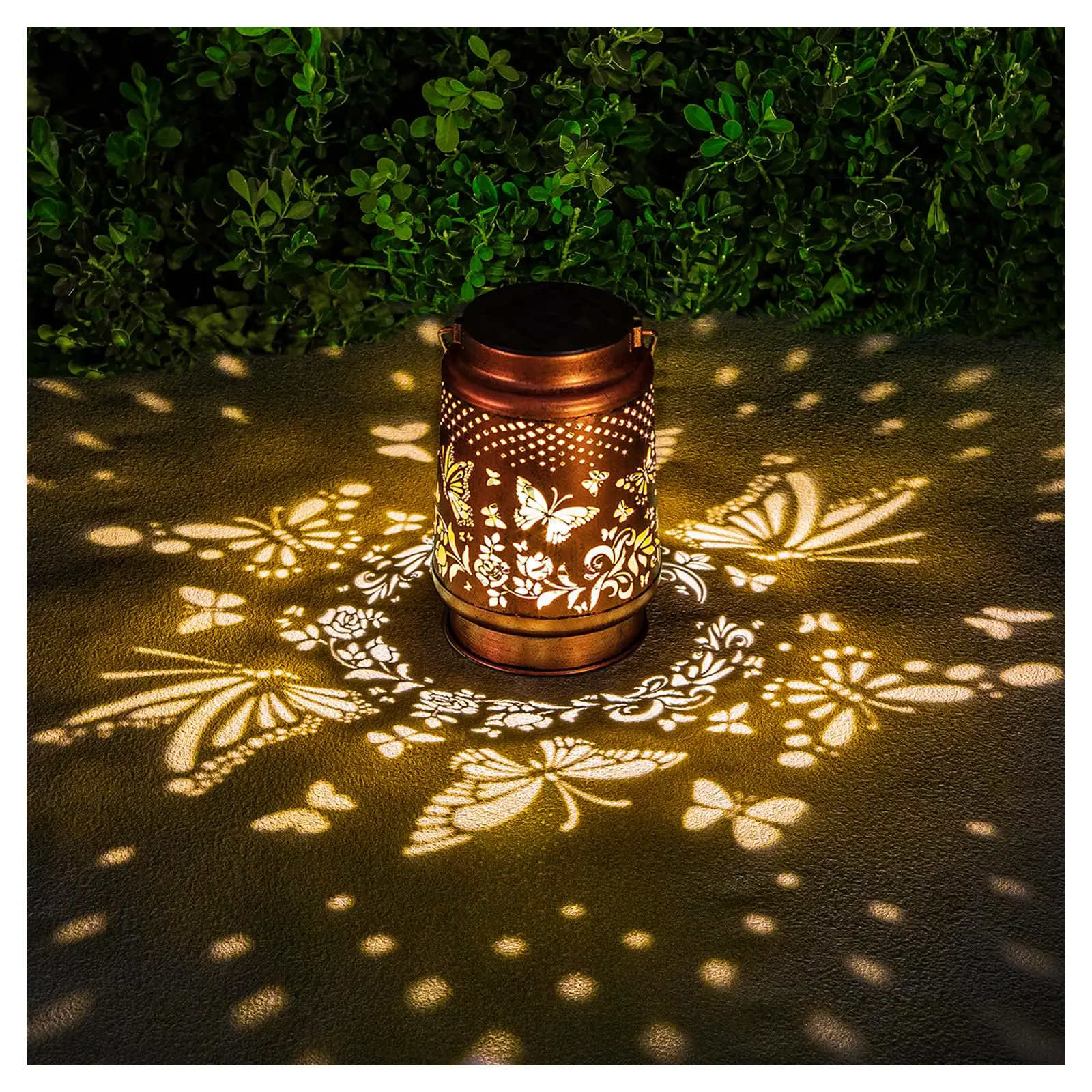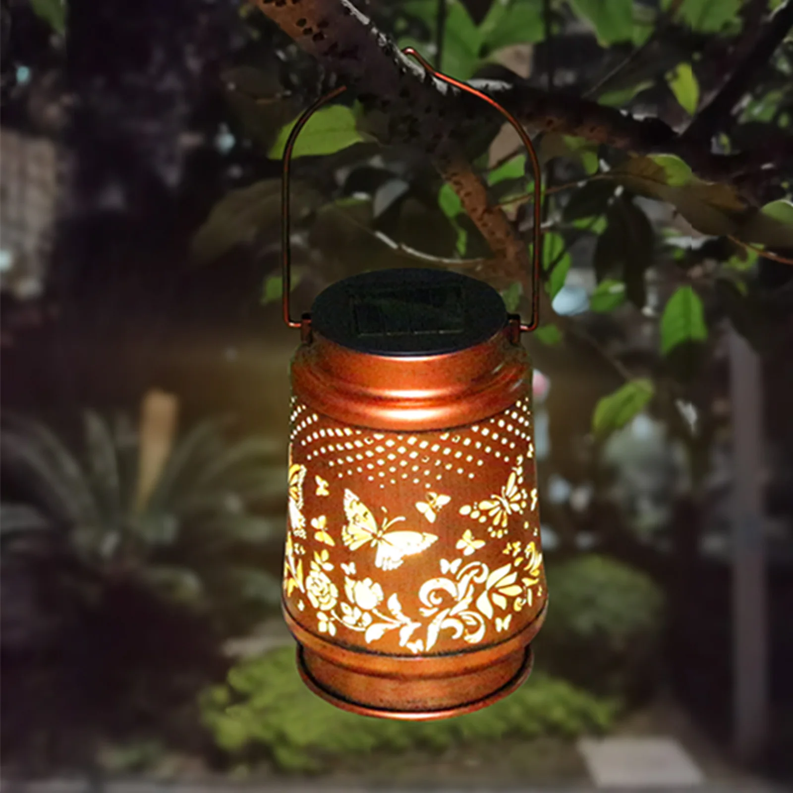 Graceful Decorative Design – The retro appearance, with gold copper color and hollow out metal veneer, the solar outdoor lanterns casts bright and warm light in darkness, accompanied by gorgeous and graceful butterfly patterns, adding a beautiful atmosphere to the surrounding environment.