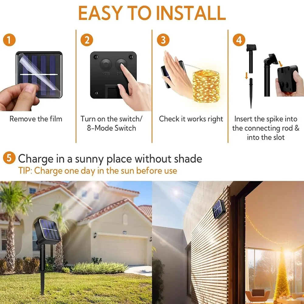 Solar String Lights Outdoor Waterproof Solar Fairy Lights 8 Modes Solar Christmas Lights for Garden Patio Wedding Decorations